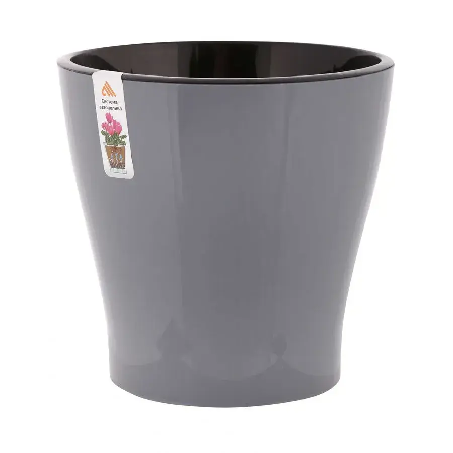 Объем 5 литров оптимален для среднерослых растений. Светло-серый цвет гармонично вписывается в любой интерьер, а внутреннее черное покрытие маскирует грунт. Металлизированный бортик обеспечивает надежную фиксацию декоративных элементов.