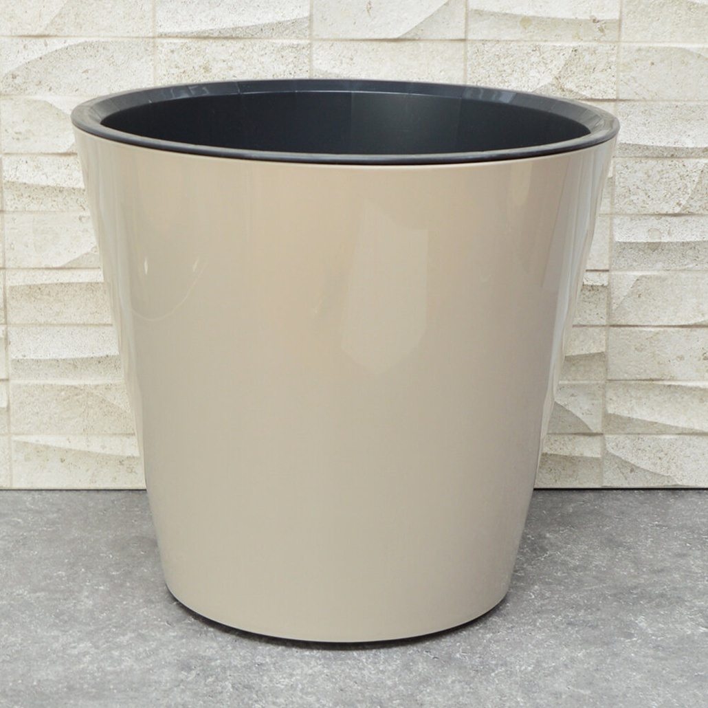 Горшок состоит из двух частей: внешнего кашпо светло-бежевого цвета и внутренней черной вставки. Прочный пластик устойчив к механическим повреждениям и перепадам температур.