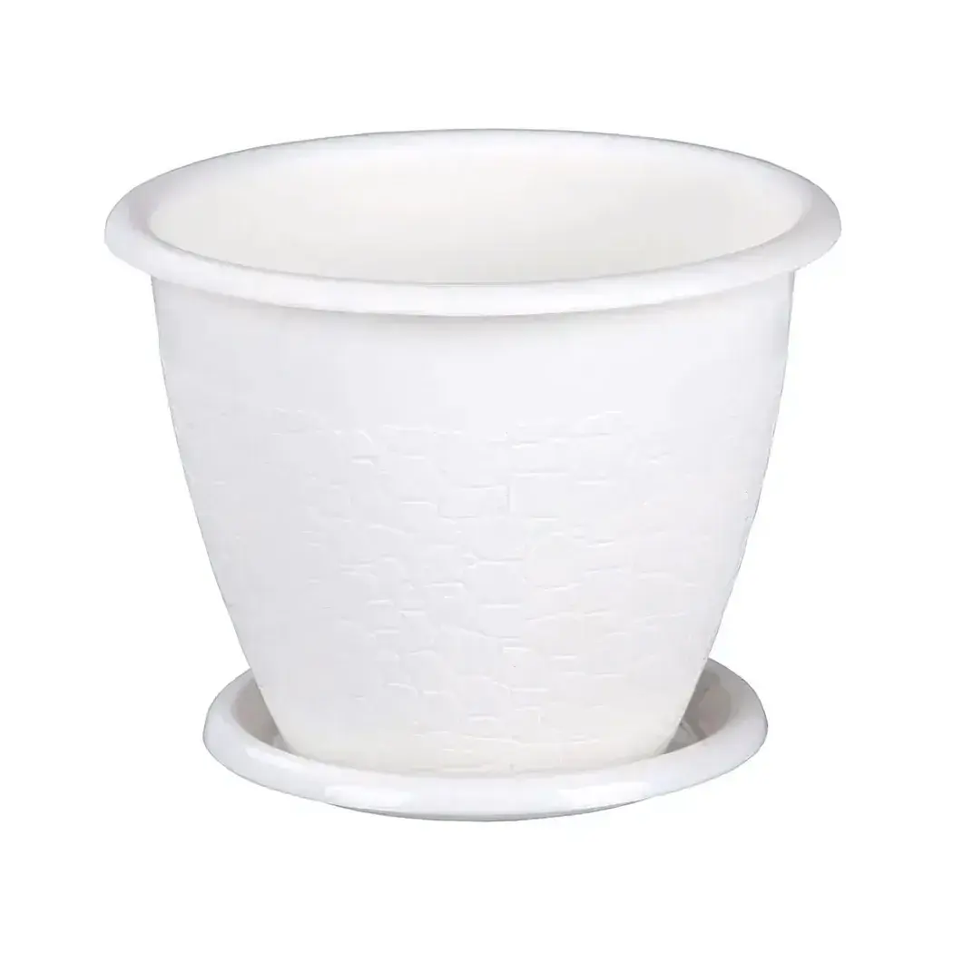 Цветочный горшок Розалия 1,2л с поддоном, белый, устойчивый к морозу