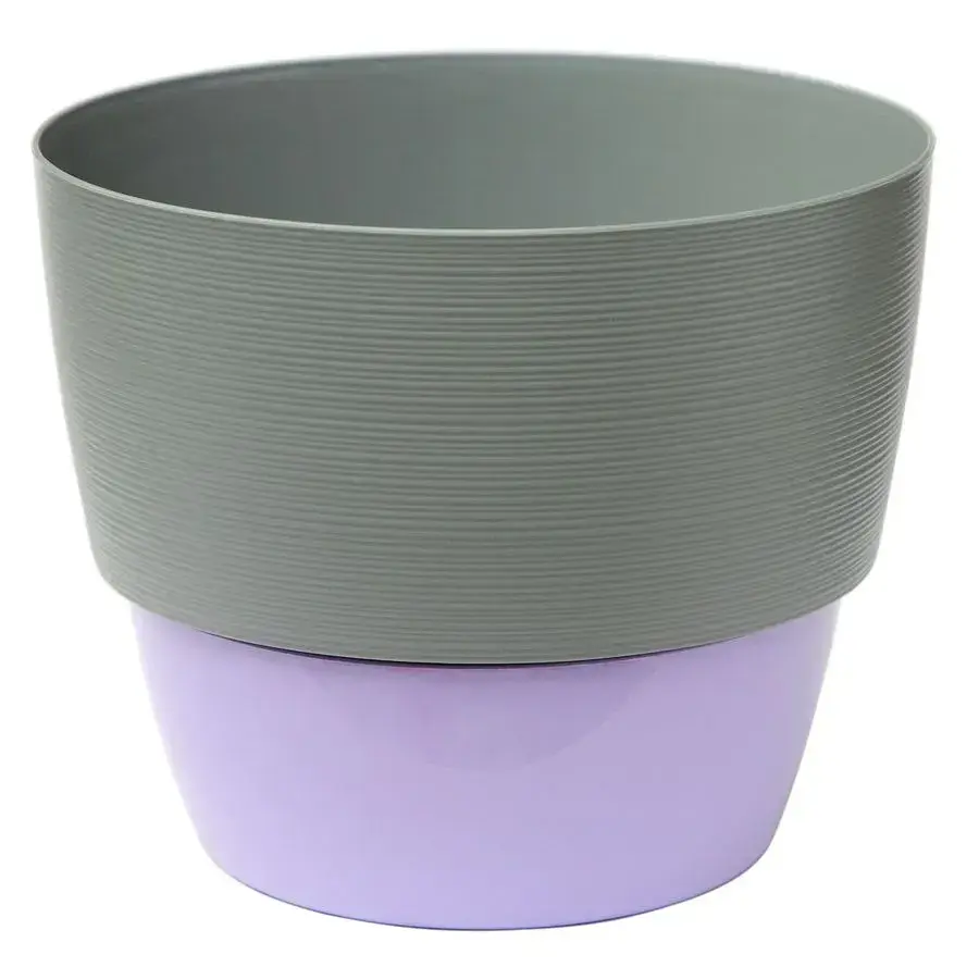 Горшок цветочный с вкладкой «Валенсия» 2,5л, серый/лаванда, пластик, d17,5см h14,5см