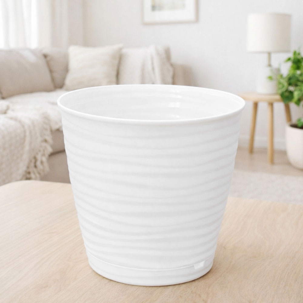 Основные преимущества: материал из пластика высокого качества, обеспечивающего экологичность и долговечность, а также дренажные отверстия для вентиляции корней, предотвращающие загнивание. Белый цвет гармонично сочетается с любым оформлением, а глубокий объем позволяет разместить растения без препятствий.