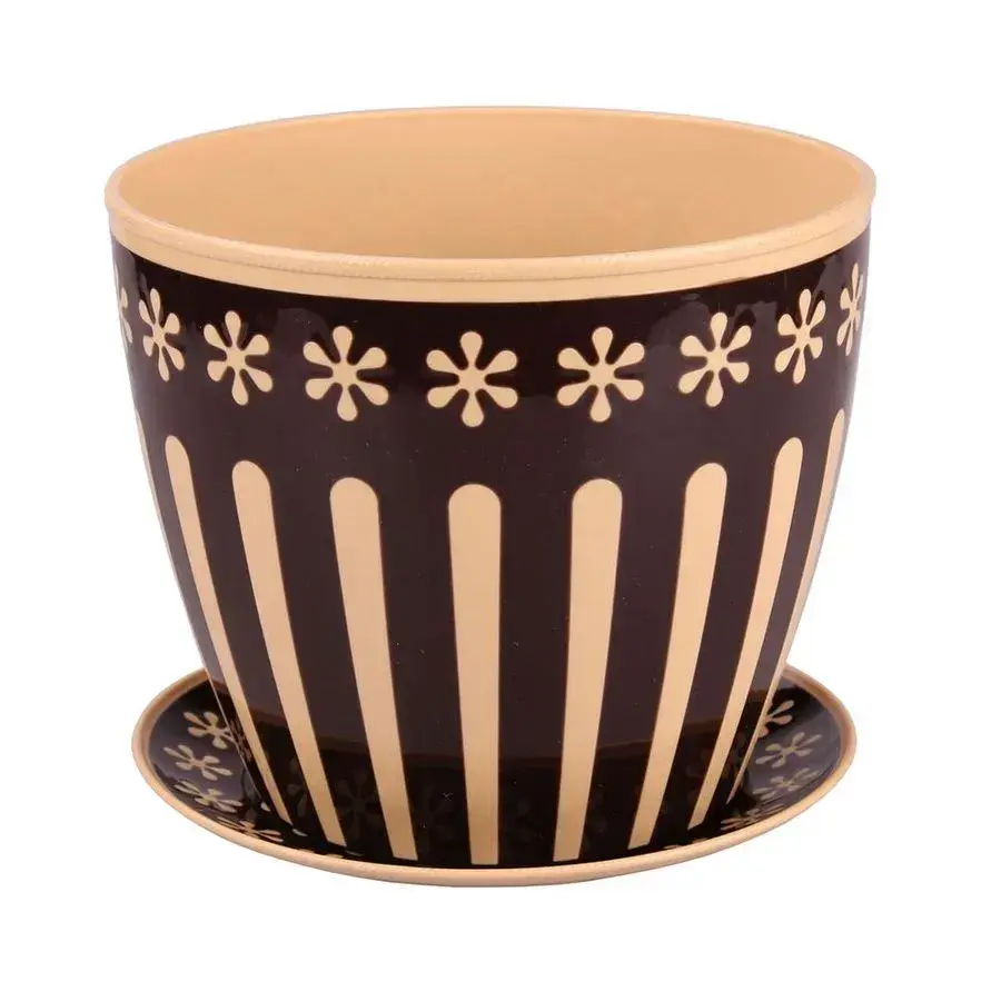 Горшок цветочный "Валенсия" 3,4л с подставкой, пластик, бежево-коричневый, комплект 16 шт