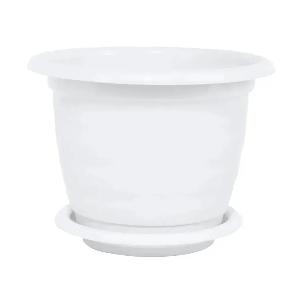 Горшок цветочный с поддоном, пластик, 1 л, белый — удобный полив, защита от перелива