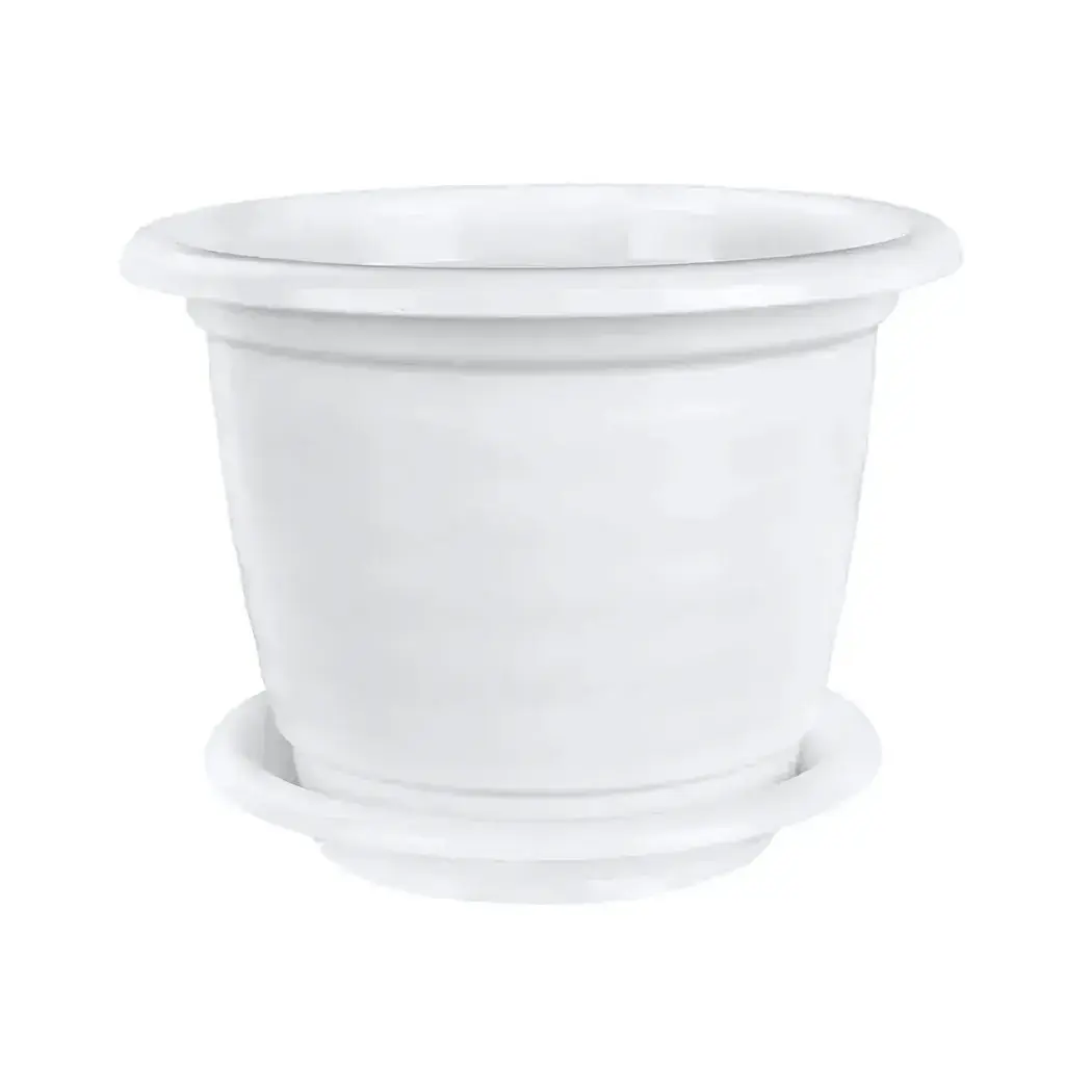 Горшок цветочный "Виола" 5л с поддоном, пластиковый, белый, для комнатных растений