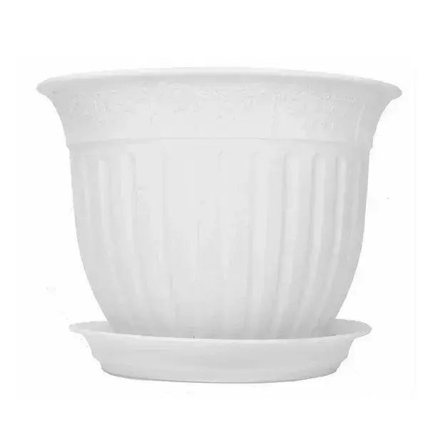 Пластиковый горшок с поддоном сочетает практичность и эстетику. Усиленное дно гарантирует устойчивость даже для высоких растений, а матовая поверхность сохраняет аккуратный вид годами.
