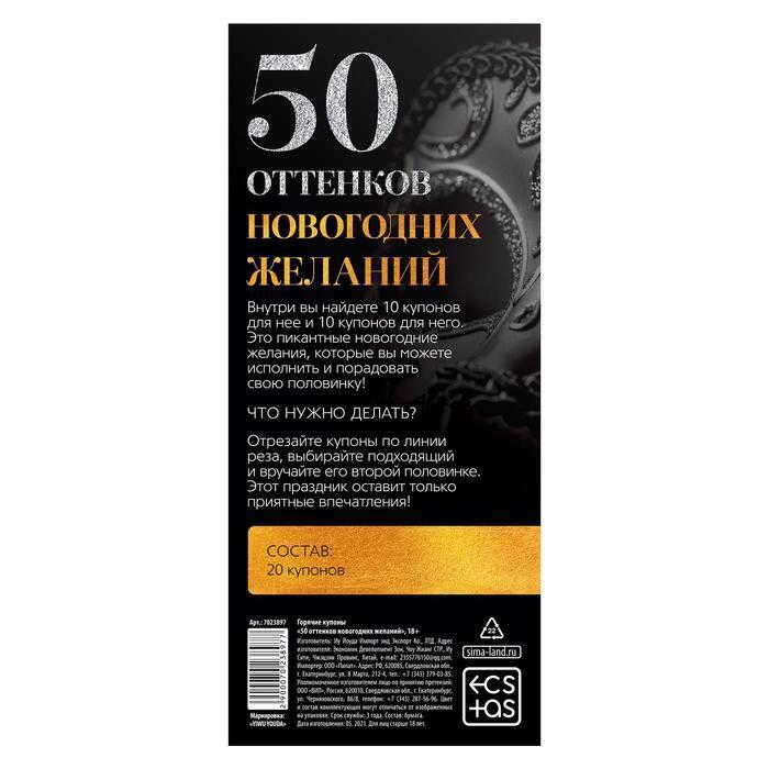 Набор купонов «50 оттенков новогодних желаний» для пар, 20 штук, 18+