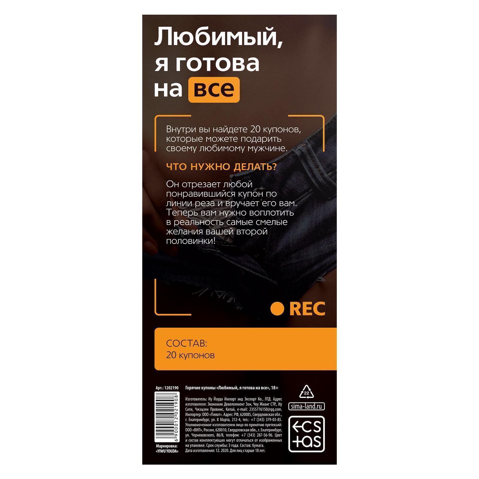 Хотите удивить своего партнера и разжечь страсть? Набор эротических купонов 'Любимый, я готова на всё' поможет вам создать незабываемые моменты и укрепить связь между вами.