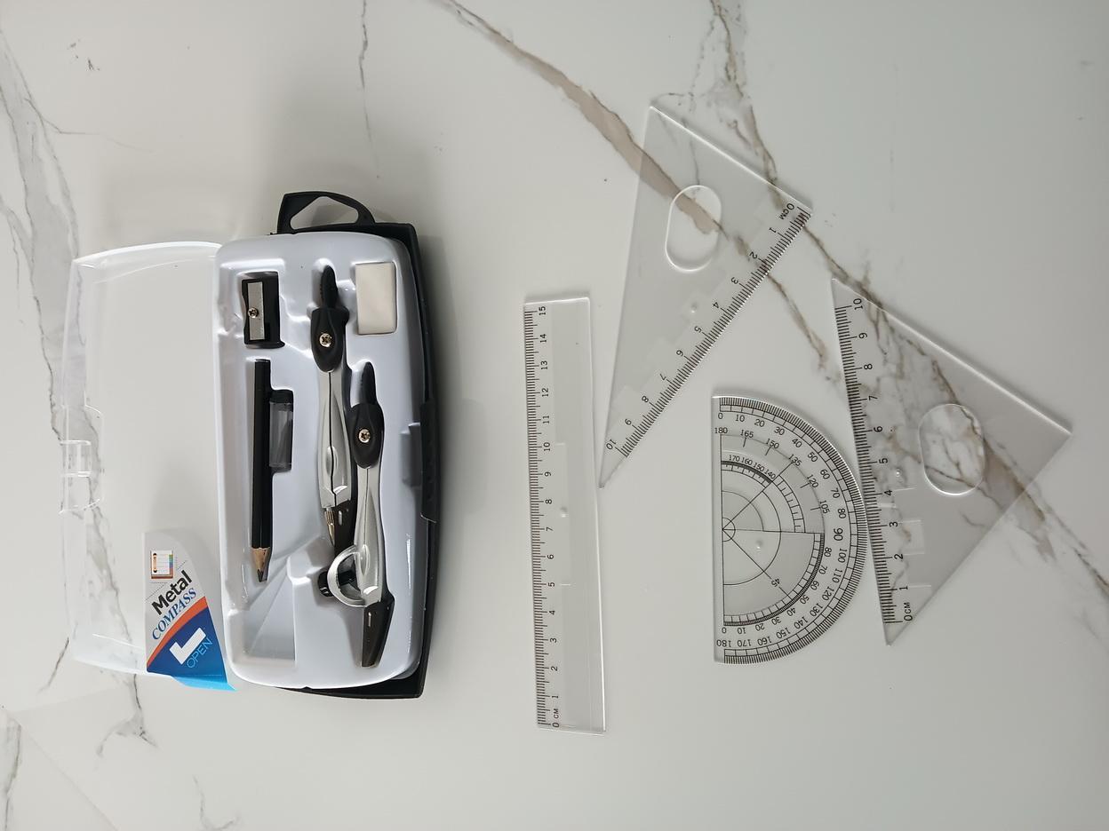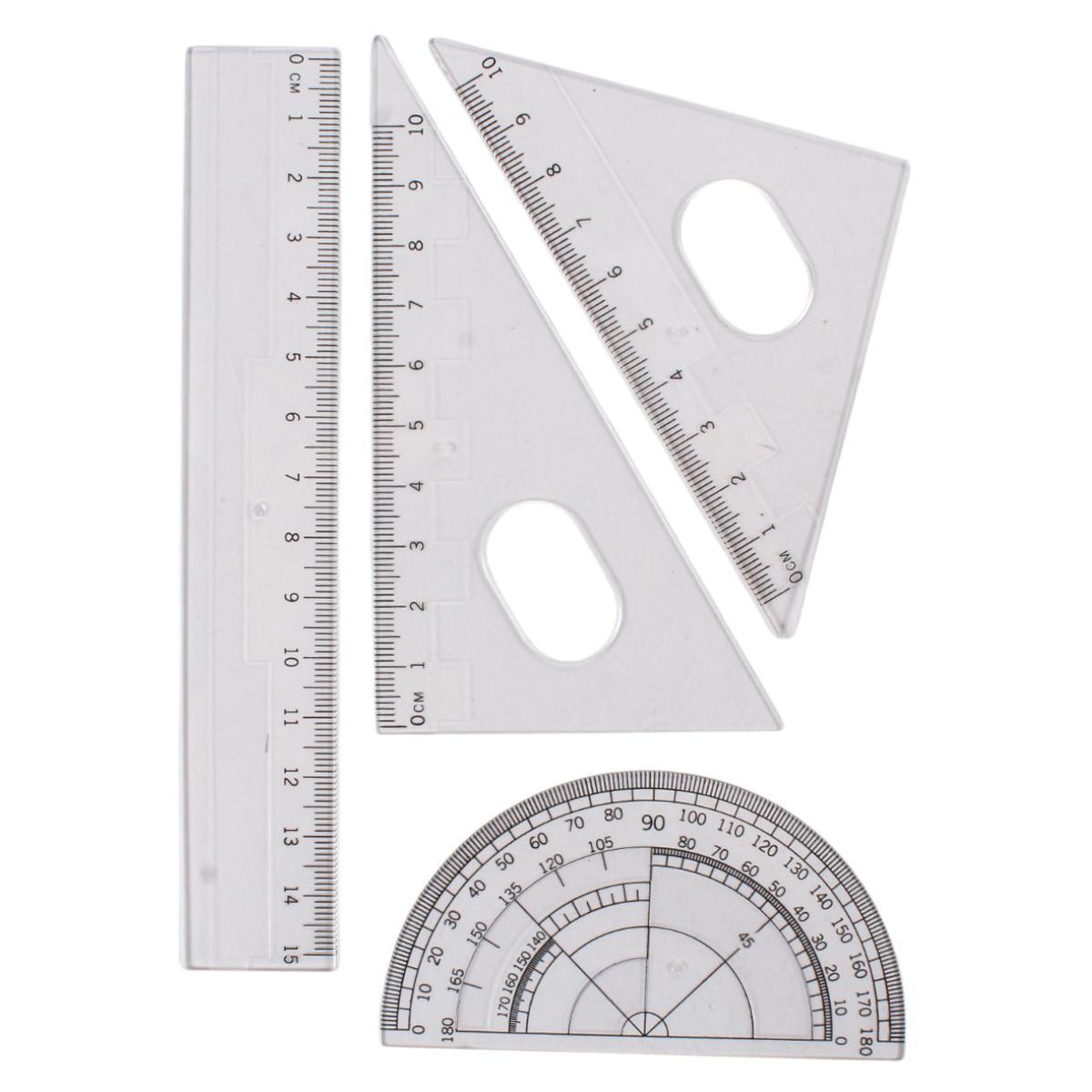 - Полная комплектация: 10 предметов включают транспортир, 2 треугольника с измерительной шкалой и линейку 4 лин.
