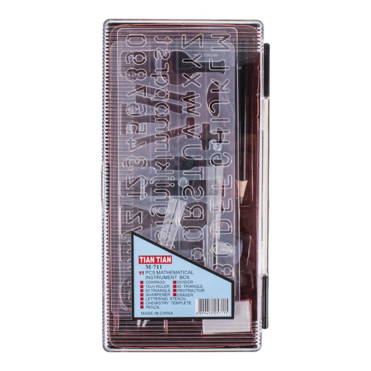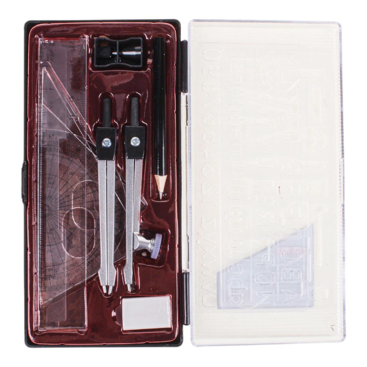 Полный комплект инструментов в удобном пластиковом кейсе с прозрачной крышкой обеспечивает идеальную организацию рабочего пространства. Каждый предмет тщательно подобран для профессионального использования в черчении, учебе и инженерных расчетах.