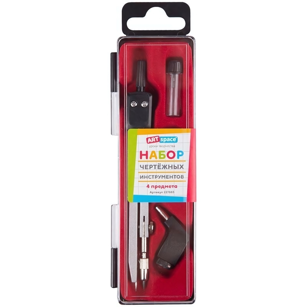 Циркуль металлический с пластиковым футляром, 135 мм, 4 предмета, набор для чертежей «Спейс»