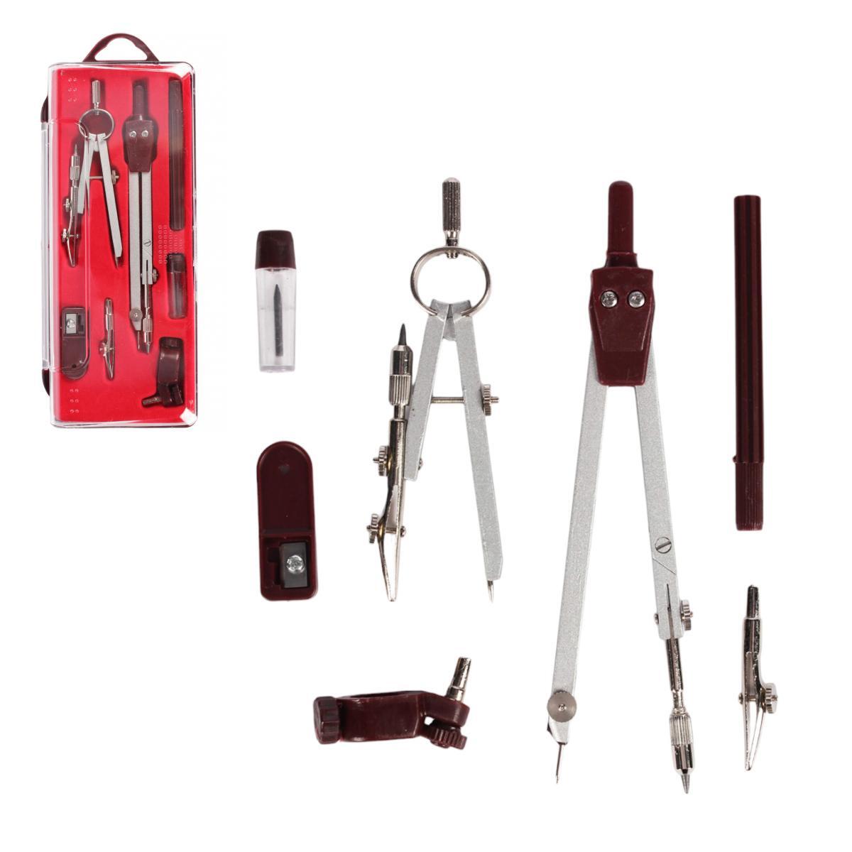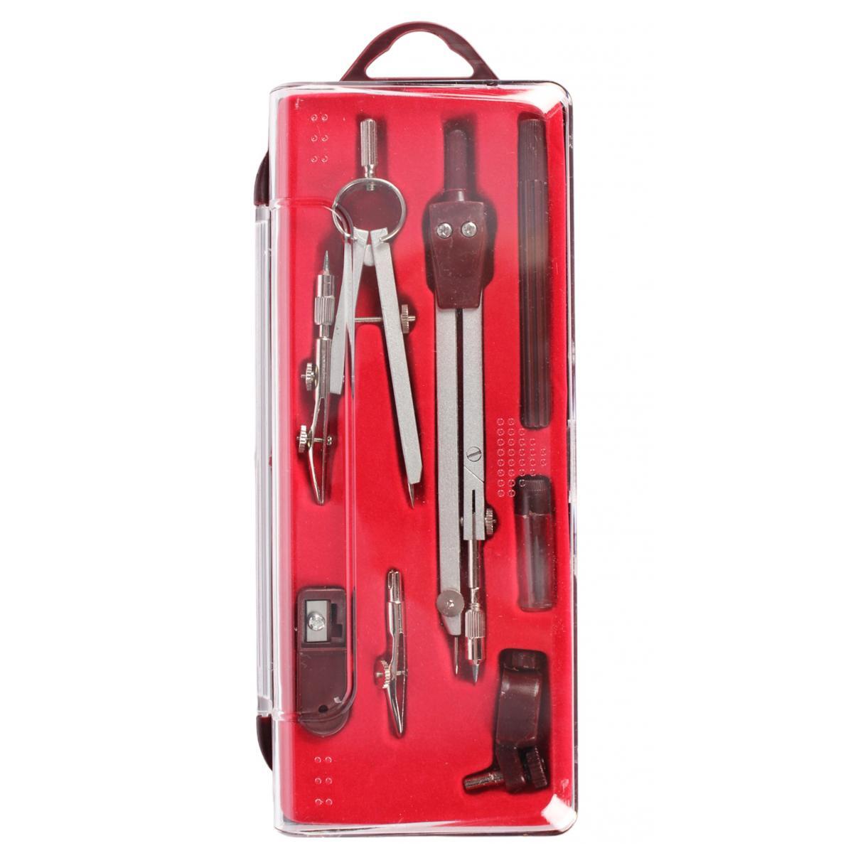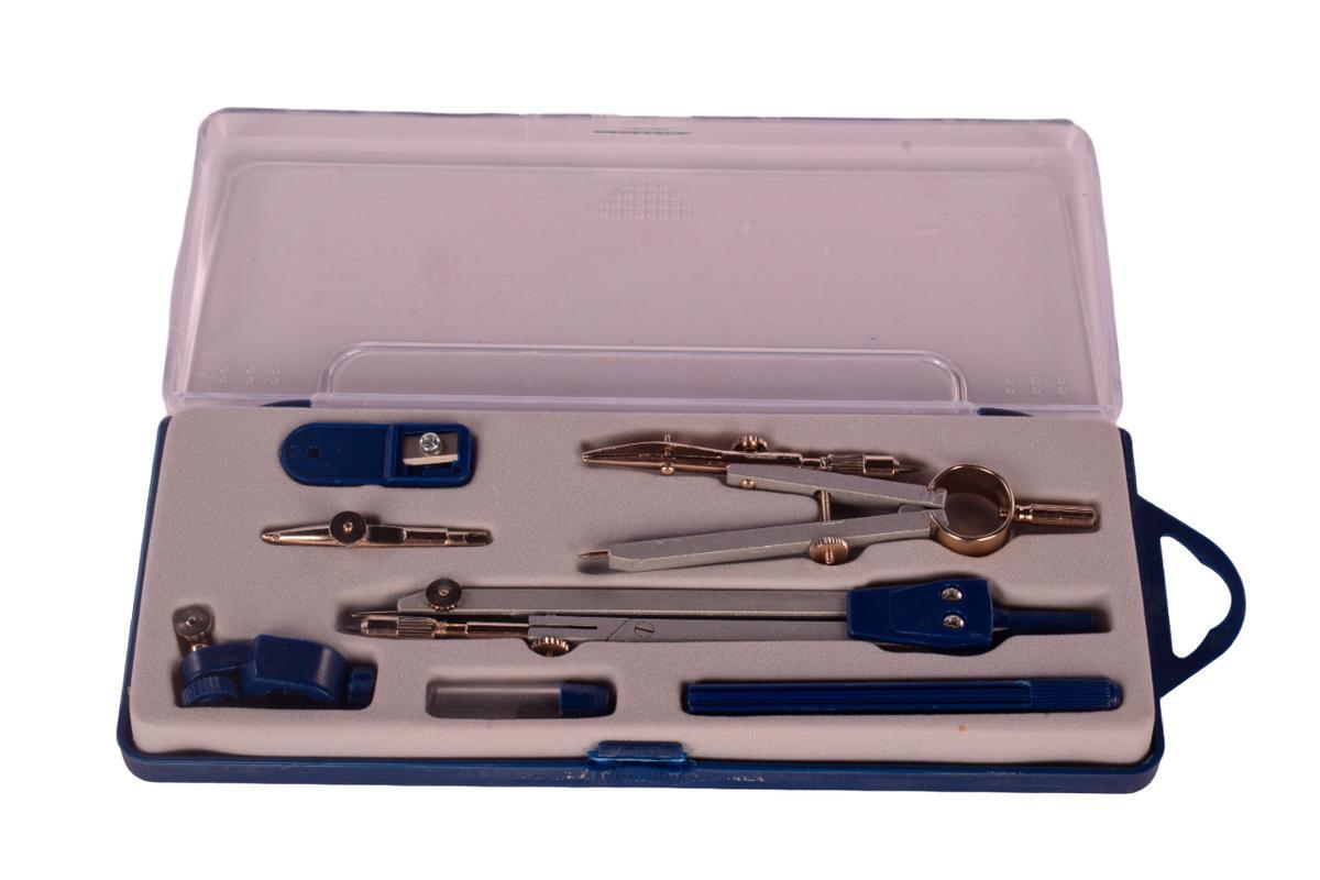 Металлическая готовальня — ваш надежный помощник в создании идеальных окружностей и графических проектов. Укомплектованный семью специализированными инструментами, этот набор обеспечивает профессиональное качество чертежей при минимальных усилиях.