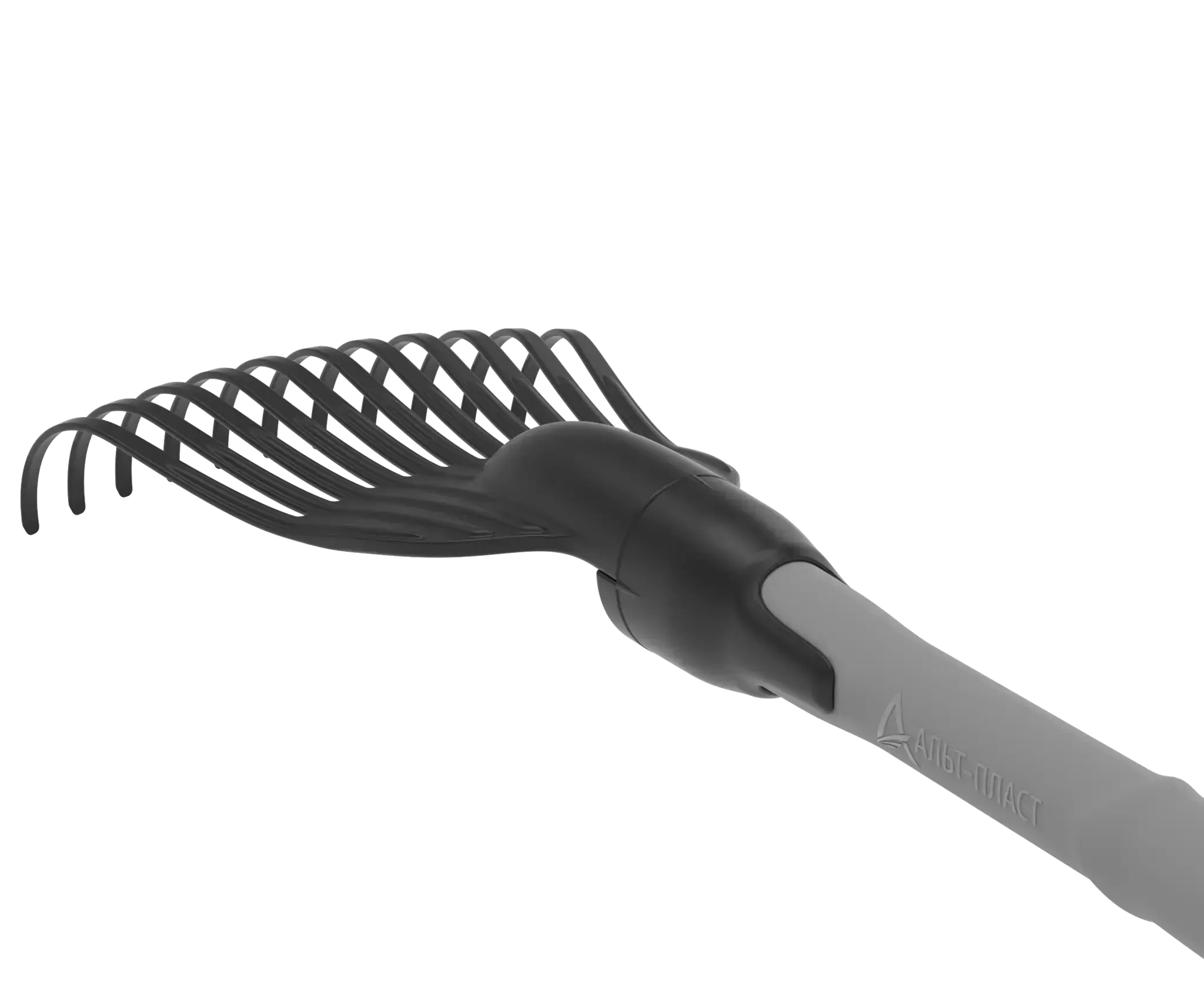 11 усиленных зубьев с антикоррозийным покрытием обеспечивают бережный сбор мусора без повреждения грунта. Специальный изгиб рабочей части предотвращает застревание растительных остатков.