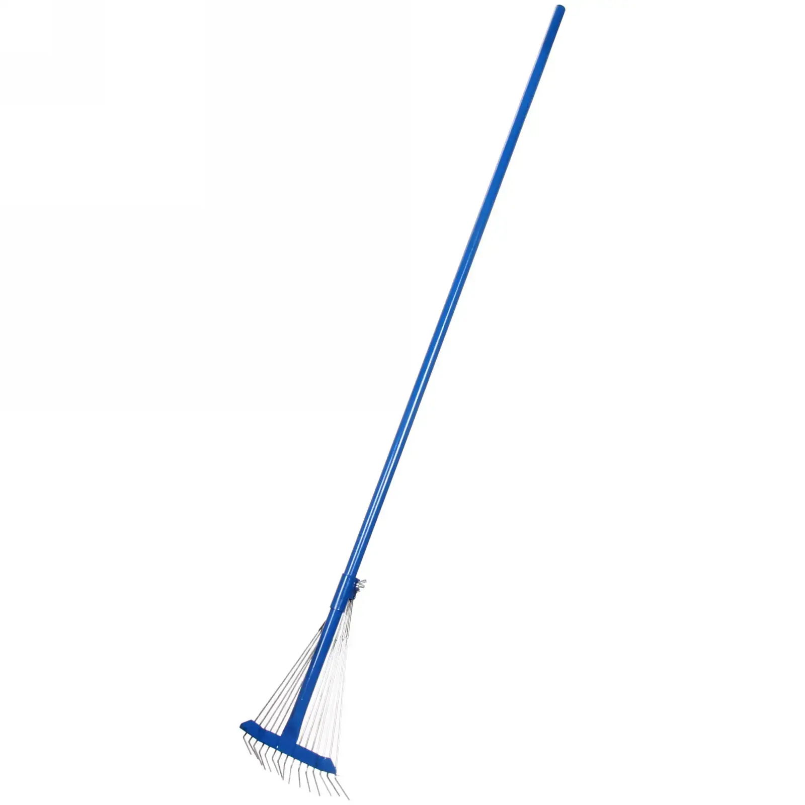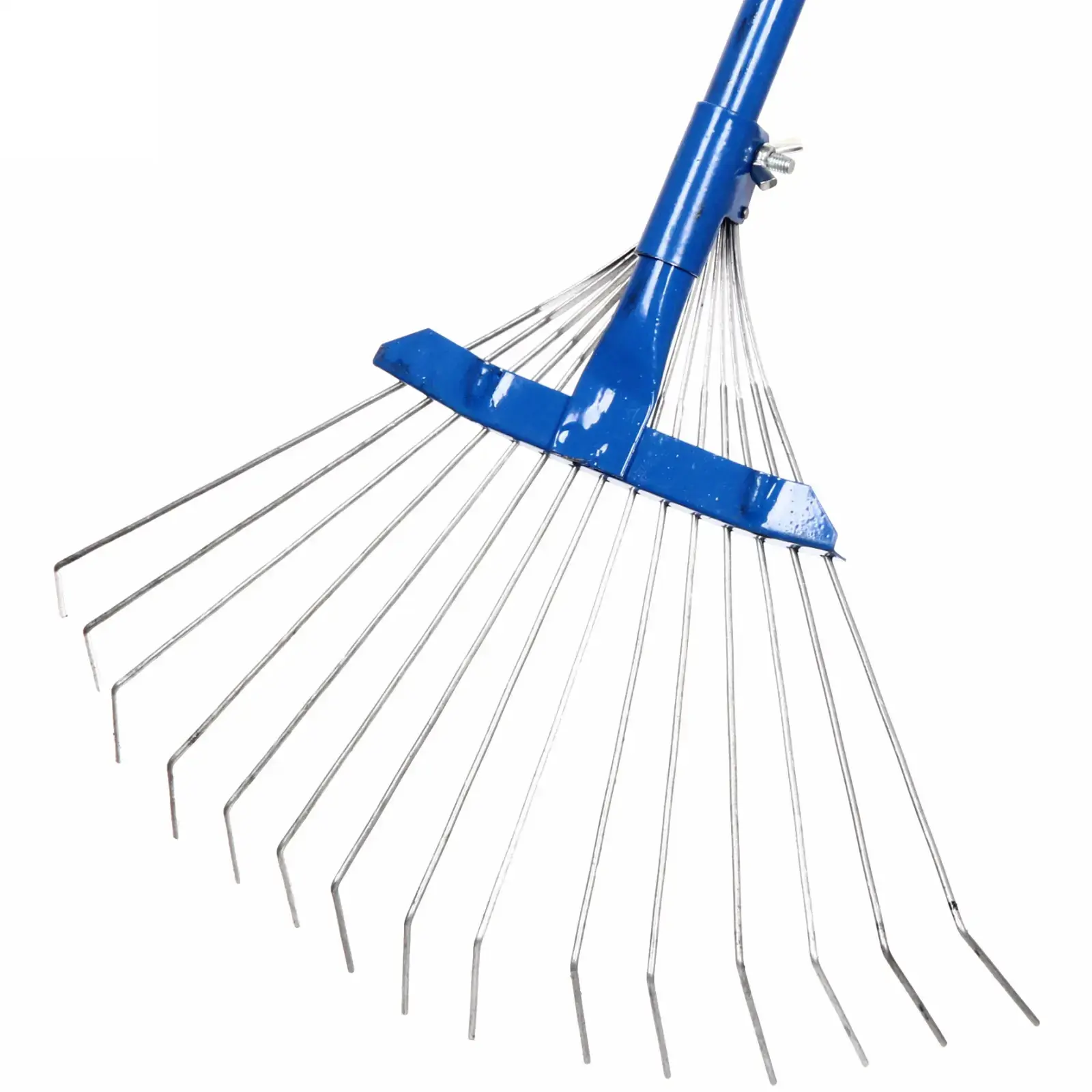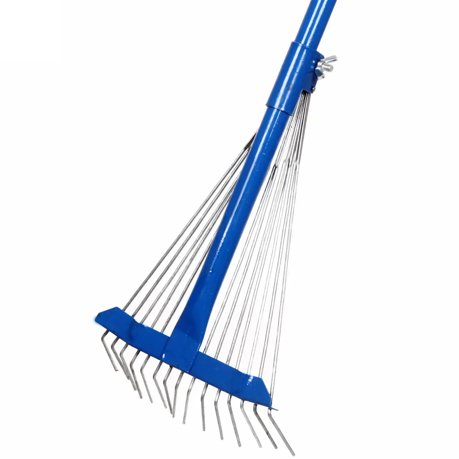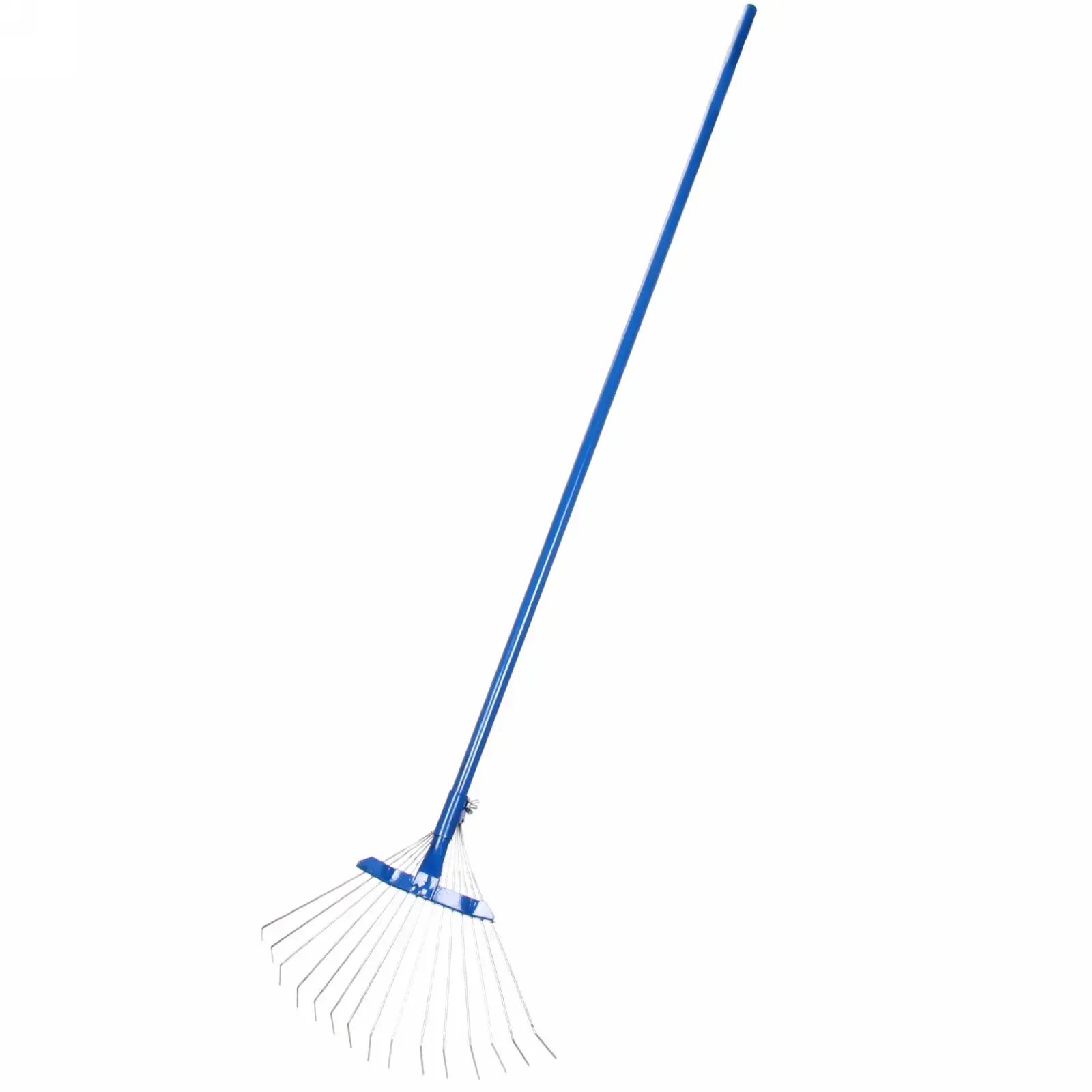 Грабли веерные раздвижные 15 зубьев, металлическая ручка 123 см, синий цвет, ширина 17 см