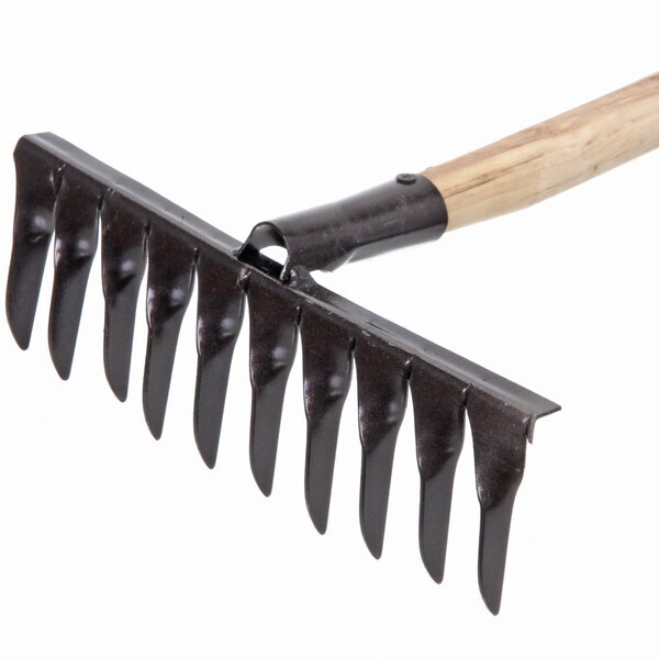 Эти грабли — идеальный инструмент для ухода за вашим садом и огородом. С их помощью вы сможете легко рыхлить почву, собирать опавшие листья и мелкий мусор, а также выравнивать перекопанную землю. Удобная деревянная ручка и прочные металлические зубья обеспечивают комфорт в работе и долговечность инструмента.
