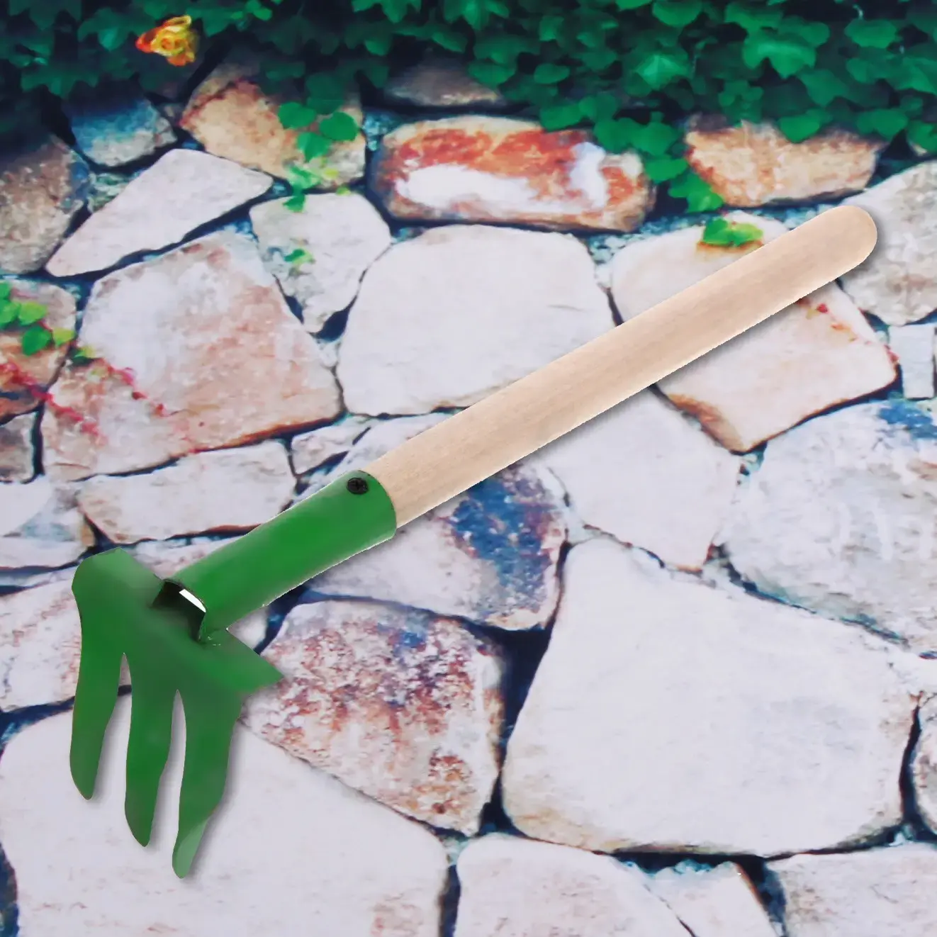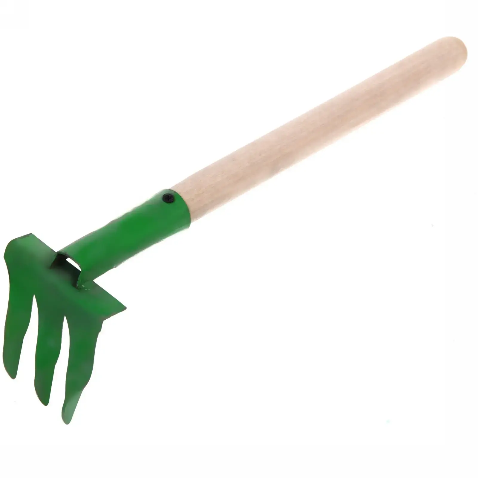 Грабли имеют три зубца, которые обеспечивают легкость в работе. Деревянная ручка стандартной длины позволяет удобно удерживать инструмент в руке. Рабочая часть окрашена в зеленый цвет, что придает инструменту привлекательный вид. Эти грабли станут отличным дополнением к вашему садовому инвентарю и помогут вам поддерживать порядок на вашем участке.