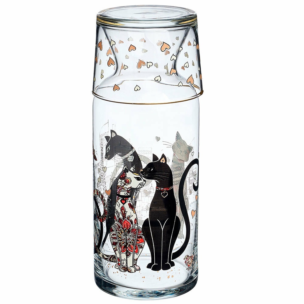 Графин 0,7л с крышкой‑стаканом, серия «парижские коты», прозрачный, стекло, стильный аксессуар для сервировки
