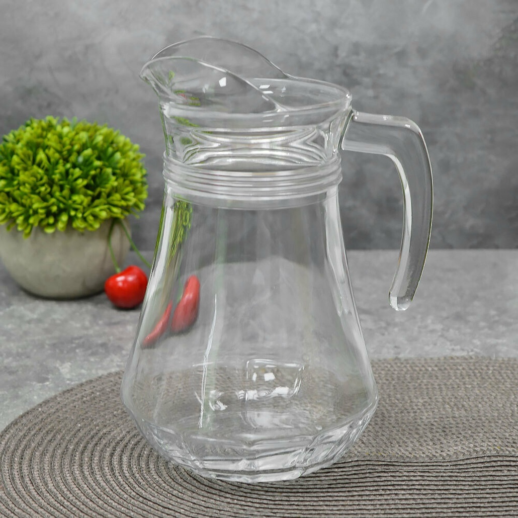 Графин стеклянный "Casablanca" 1,3л, серия HoReCa, удобное горлышко, эргономичная ручка