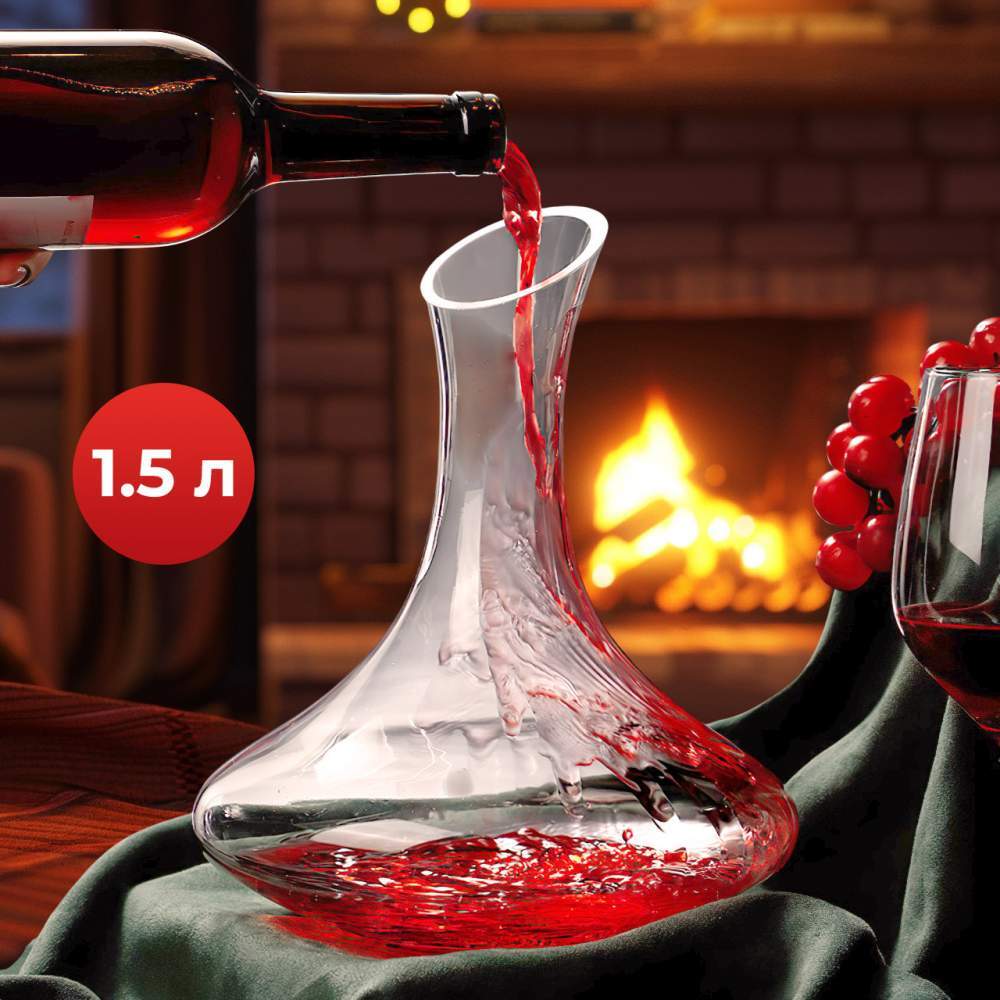 Этот элегантный графин декантер объемом 1,5 литра создан для ценителей качественного вина. Его уникальная форма не только украшает стол, но и помогает вину "дышать", раскрывая богатый букет ароматов.