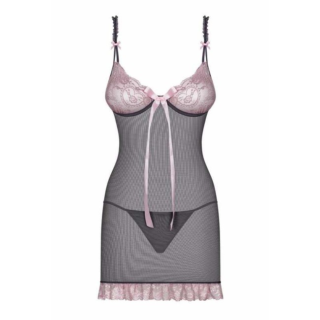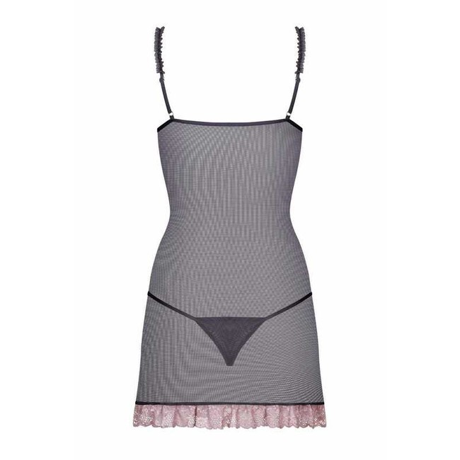 Графитовая сорочка Dovelia Chemise с розовым кружевом