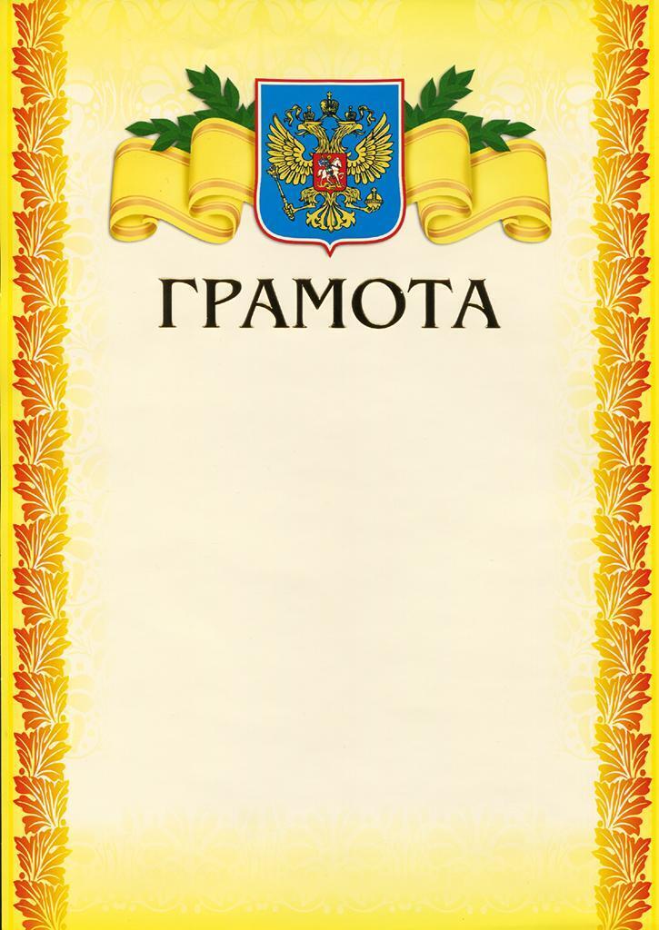 Грамота А4 тиснением на желтом фоне, плотность 200 г/м², Россия