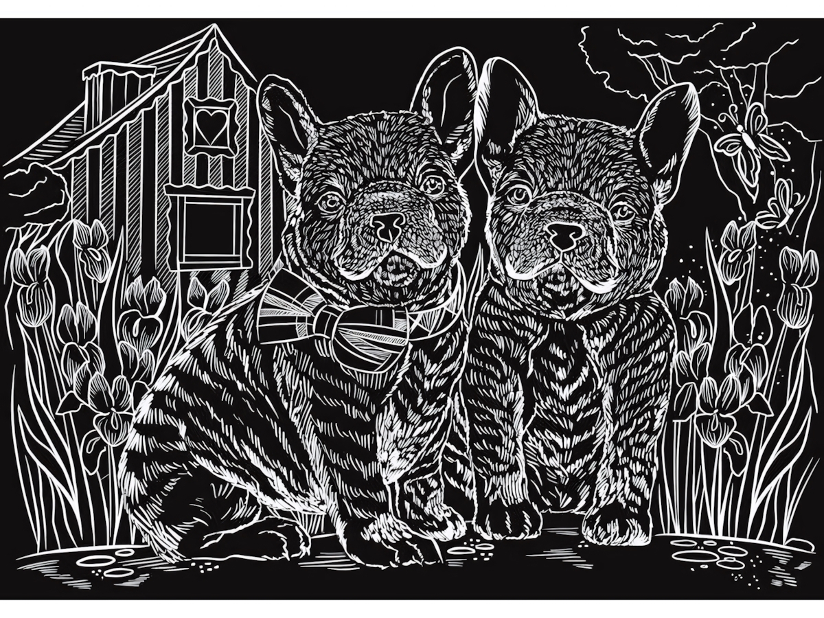 Позвольте себе окунуться в мир творчества и создать уникальную гравюру, которая будет радовать вас и ваших близких долгие годы! Закажите гравюру "Собачий дуэт" прямо сейчас и откройте для себя новые грани искусства!