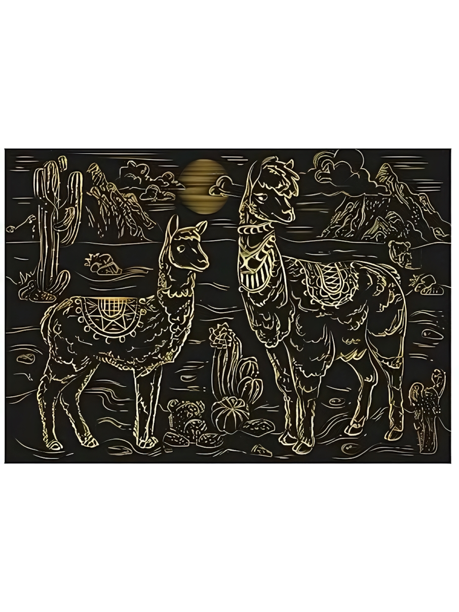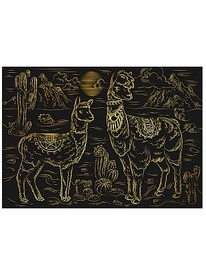 Набор для творчества «Чудесные ламы»: гравюра А4, золотистые линии, контурный рисунок, металлизированный штихель