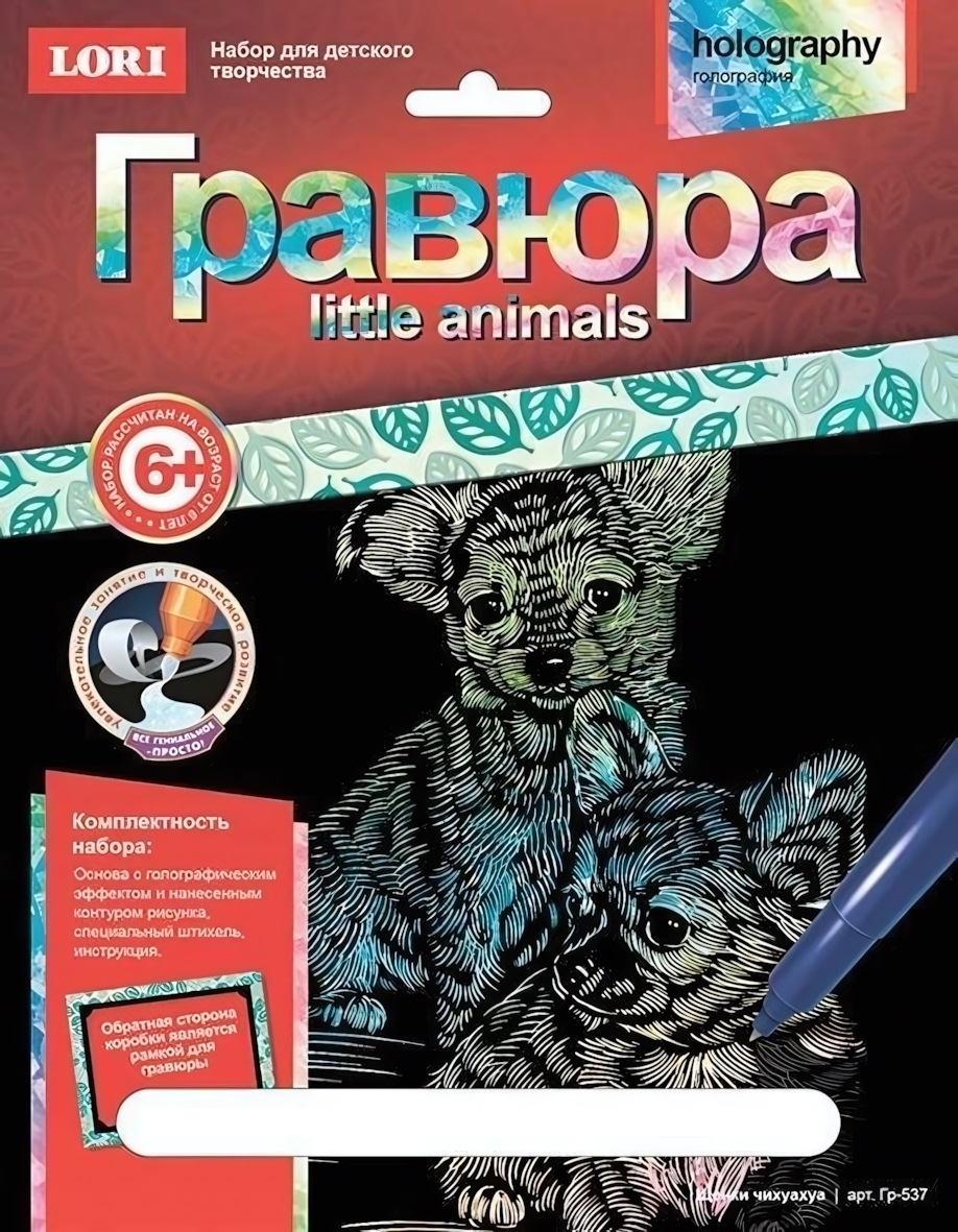 Гравюра Lori "Little Animals. Щенки чихуахуа" – это прекрасный подарок для юных художников от 6 лет и старше. Подарите ребенку возможность создать свой собственный сверкающий шедевр!