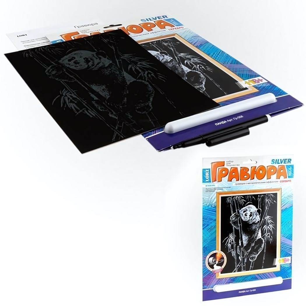 Гравюра "Панда" откроет мир творчества и художественного мастерства вашему ребенку. Уникальная техника с использованием металлического эффекта превратит процесс создания гравюры в увлекательное занятие.