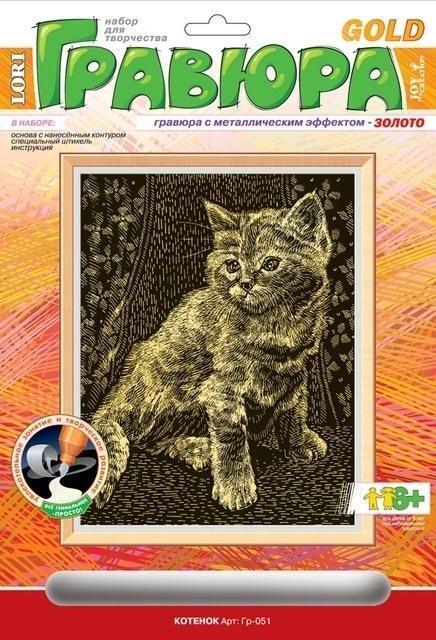 Набор для творчества «Гравюра» с золотым эффектом «Котенок», 18x24 см, картон/пластик, от 6 лет