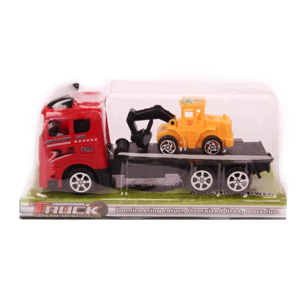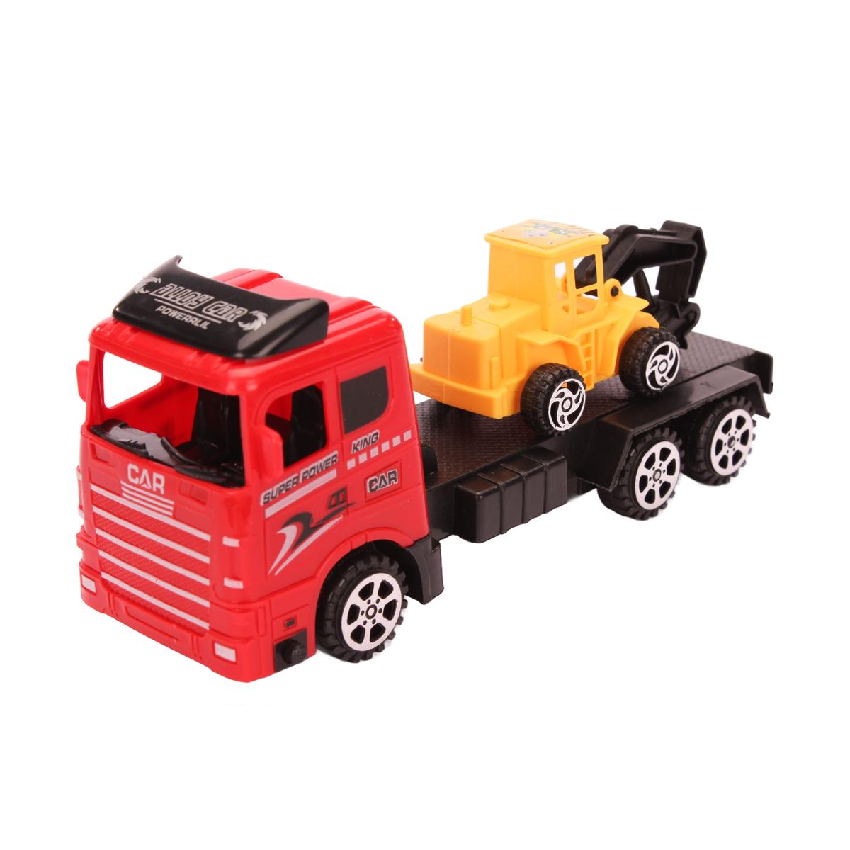 Грузовик инерционный +спецтехника 21см, красный с прицепом, развивает моторику и воображение