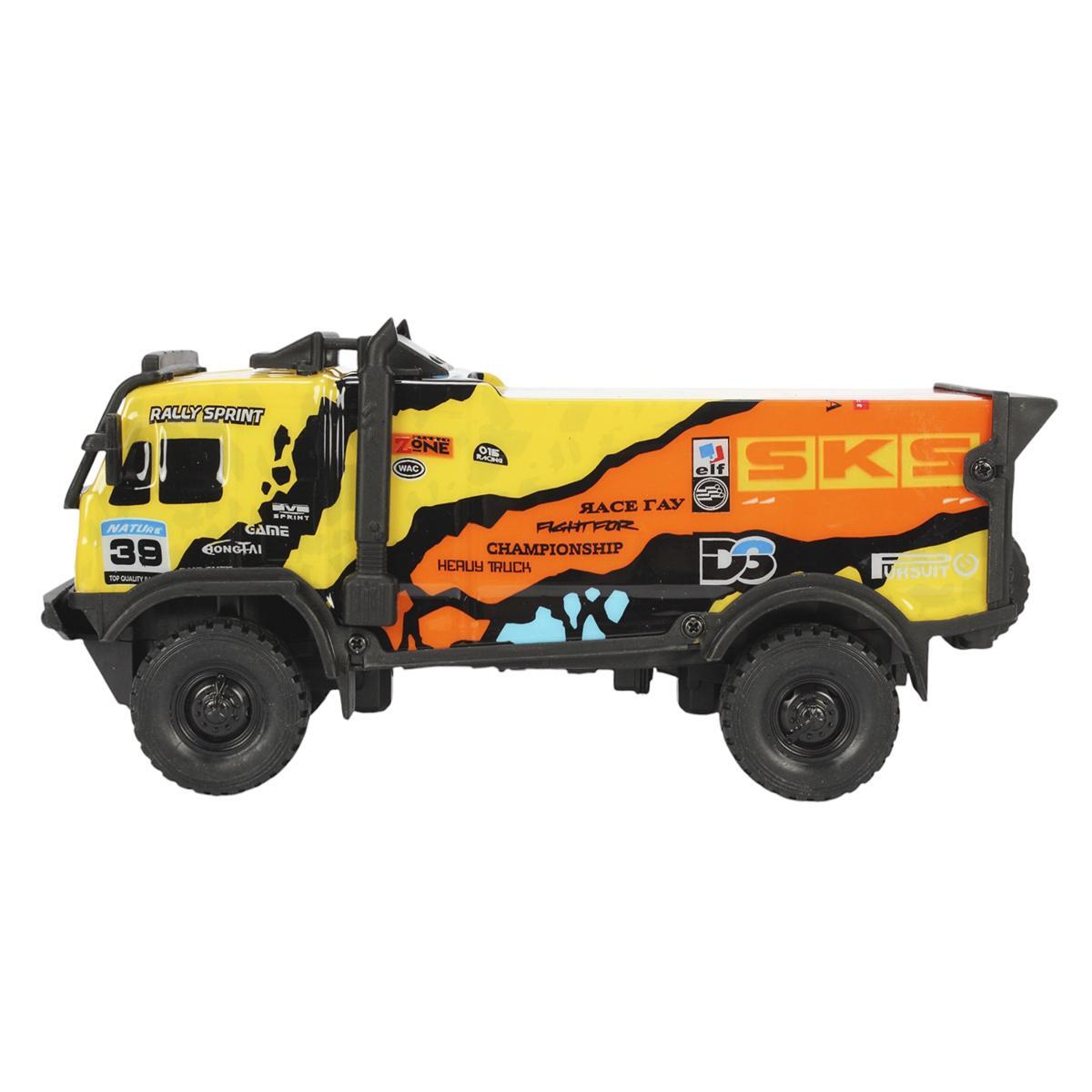 Габариты игрушки: 28,7 × 12,5 × 13,5 см. Вес — 450 г. Рекомендованный возраст — от 3 лет. В комплектации: грузовик, пульт ДУ, инструкция по эксплуатации. Для работы требуются батарейки (не входят в комплект).