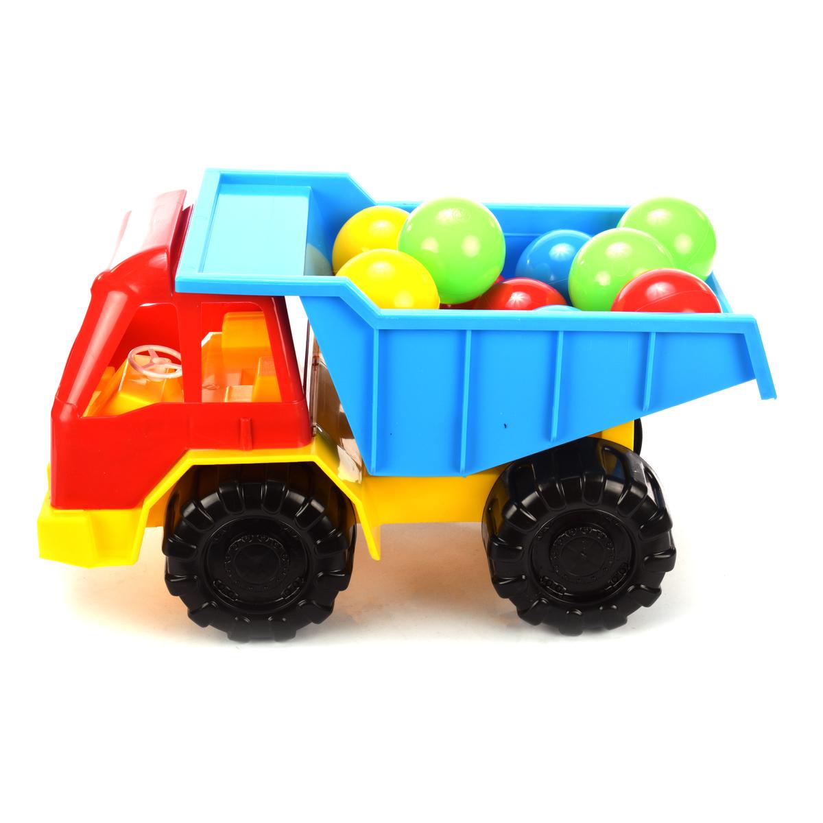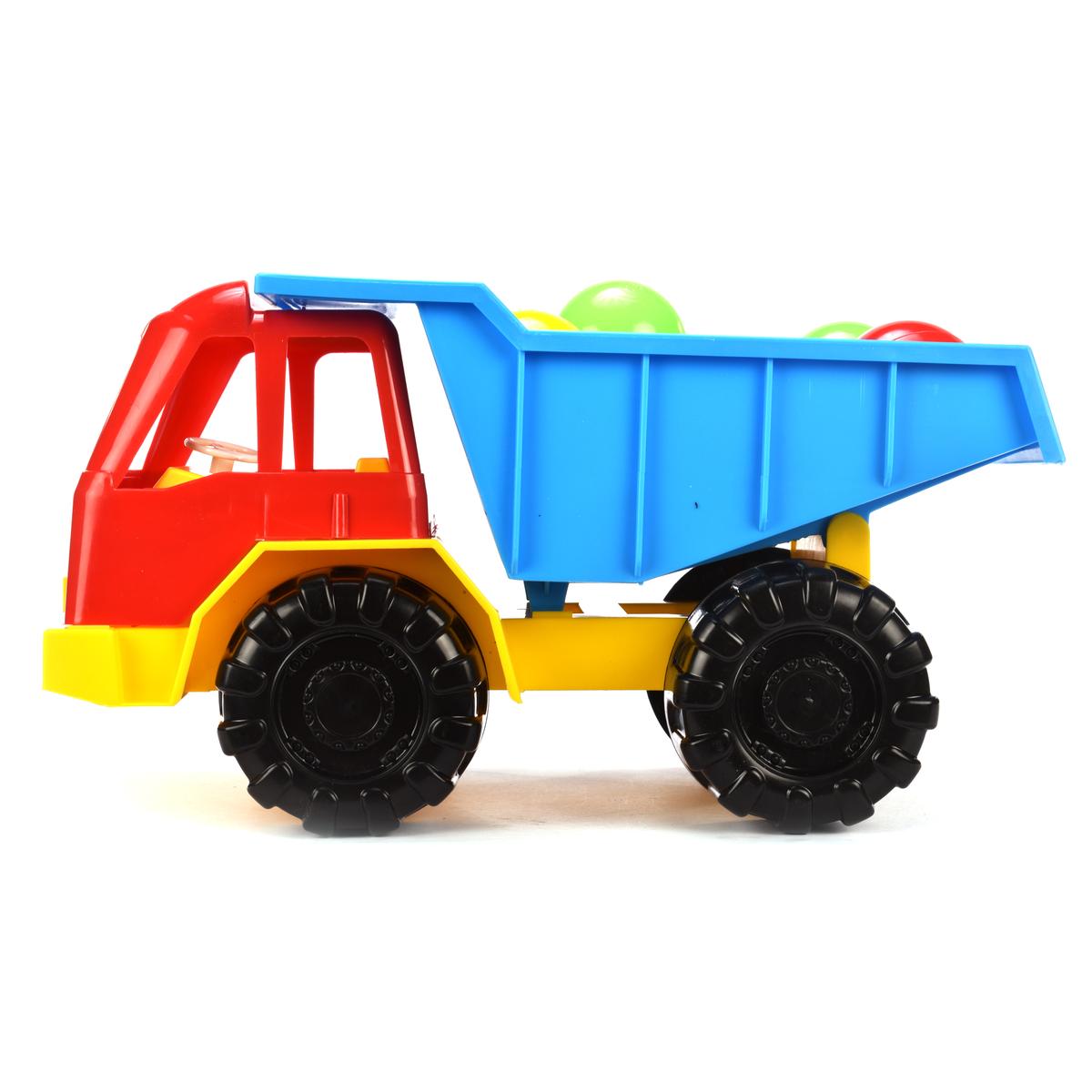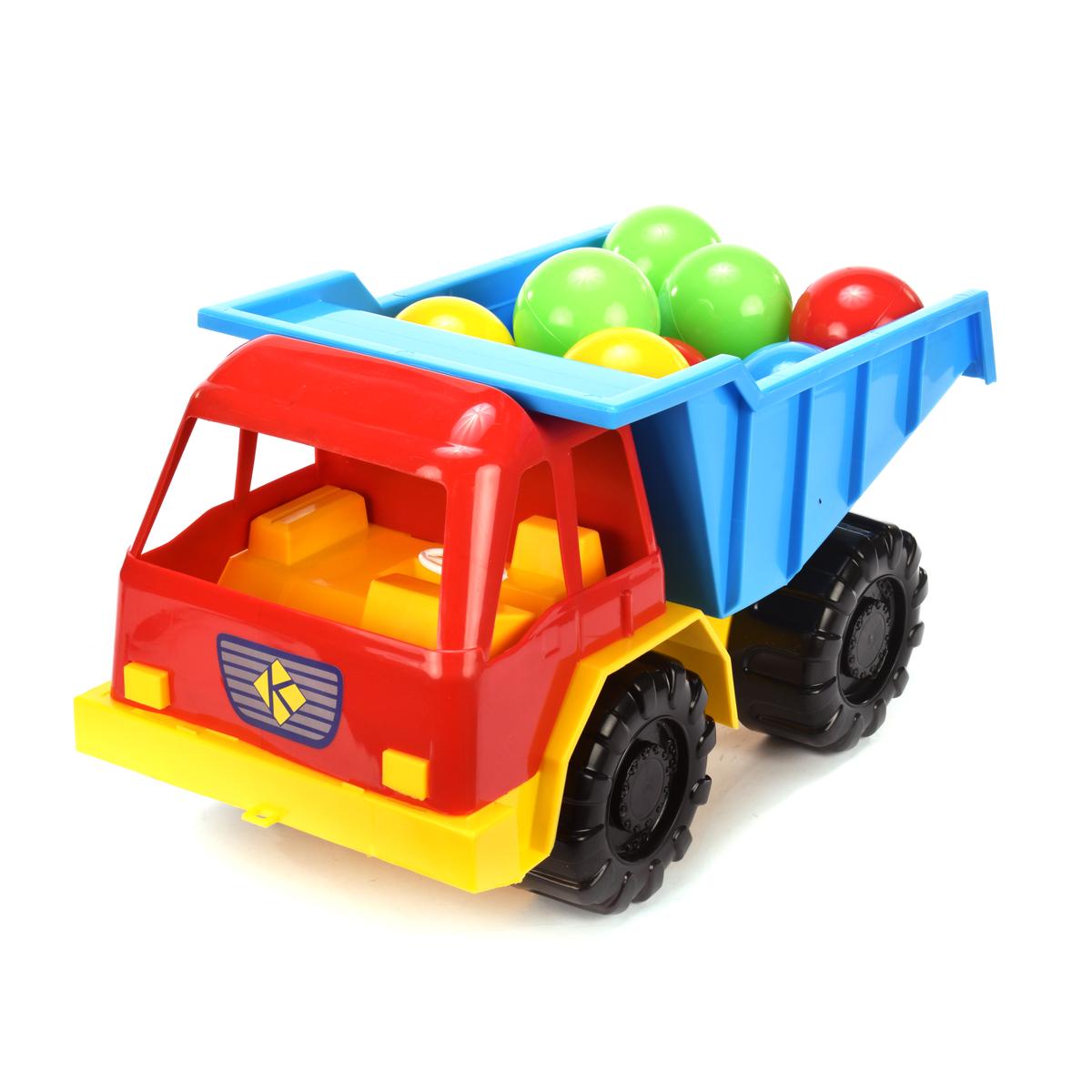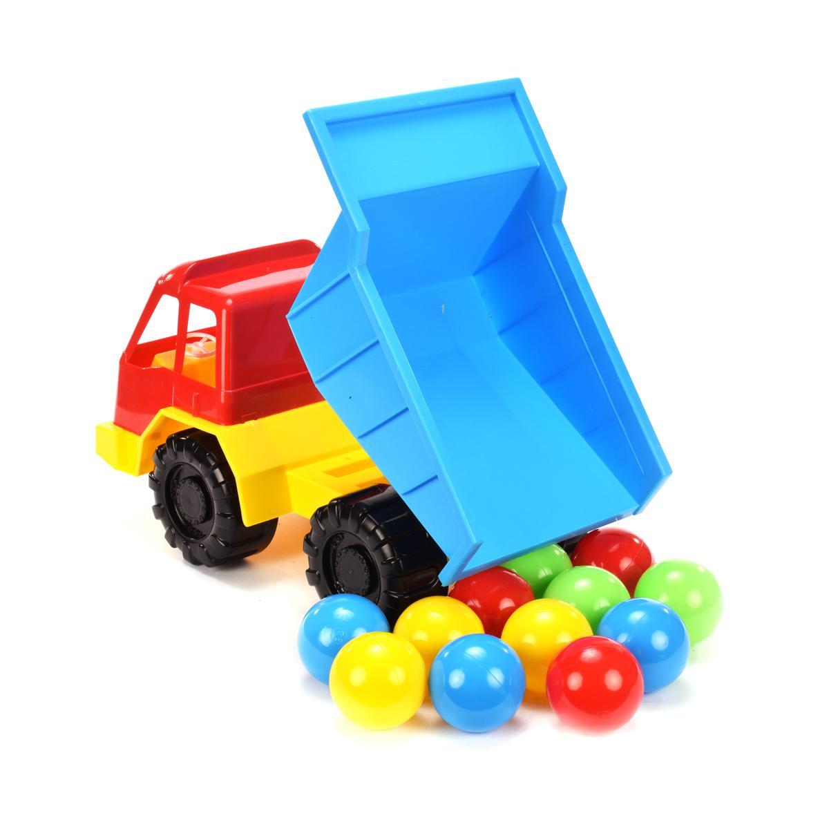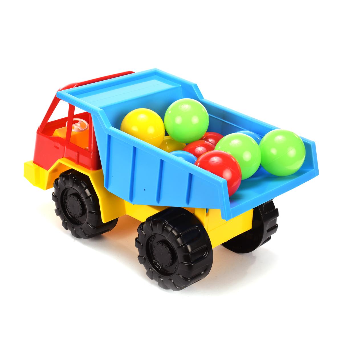 Грузовик игрушечный + шарики, ярко‑красный с синим кузовом, жёлтый низ, пластик, для детей 1‑3 лет