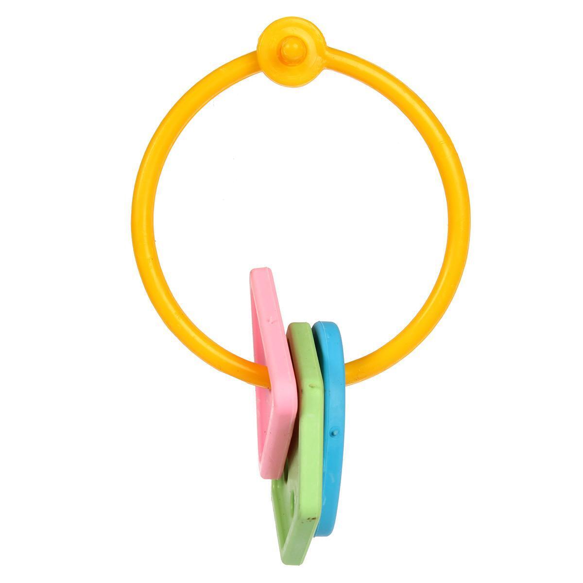 Грызунок состоит из кольца, к которому прикреплены три разноцветные пуговки: розовая, зеленая и голубая. Каждая пуговка имеет уникальную форму, что делает игру более увлекательной. Размеры грызунка идеально подходят для маленьких детских ручек, а гладкая поверхность обеспечивает комфортное использование.