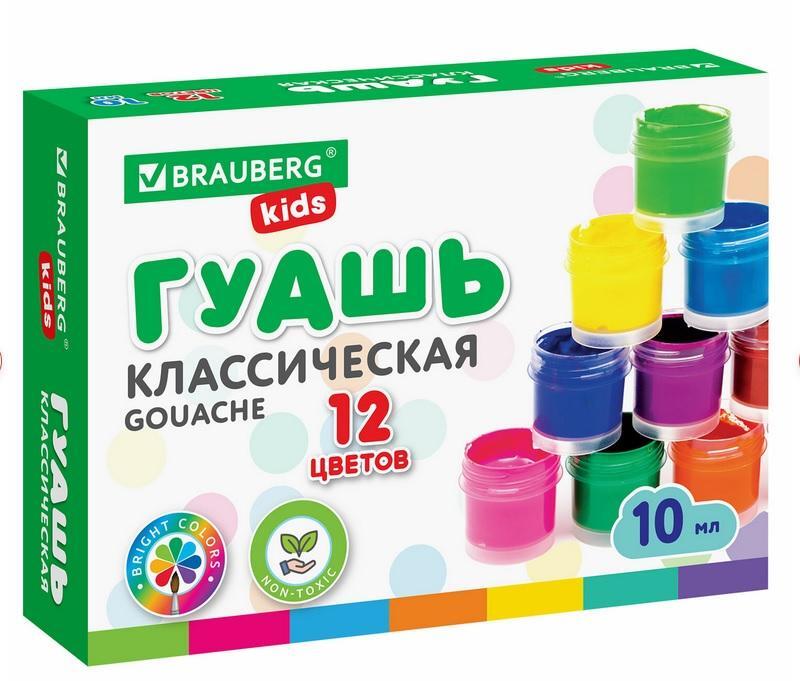 Создавайте яркие шедевры с гуашью BRAUBERG 12 цветов по 10 мл