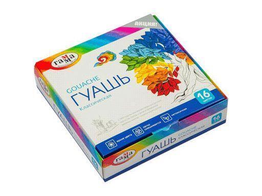 Гуашь Гамма "Классическая", 16 цветов по 20 мл – яркие краски для творчества
