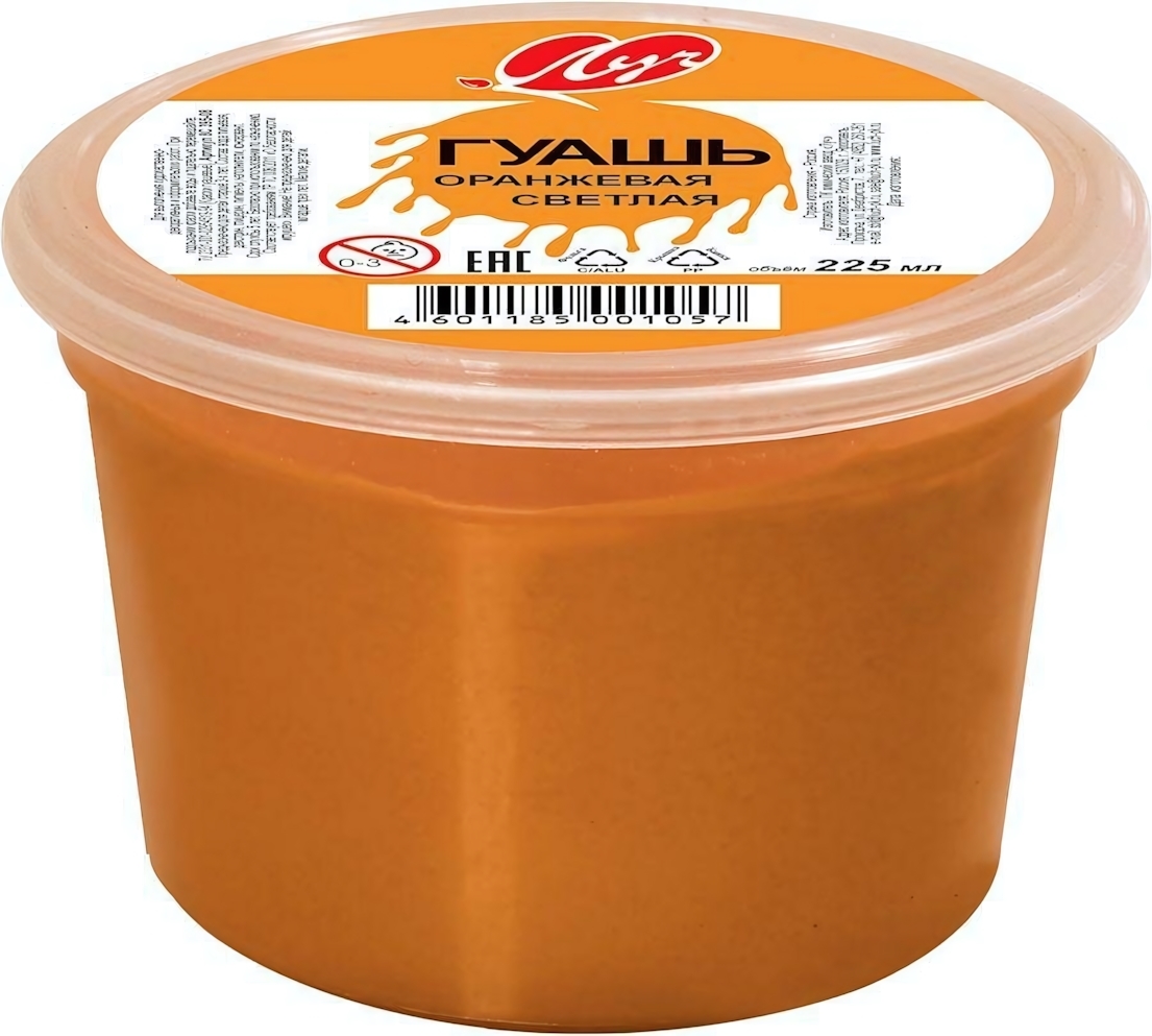 Гуашь "Луч" 225 мл, оранжевая светлая – для творчества и хобби, яркий цвет