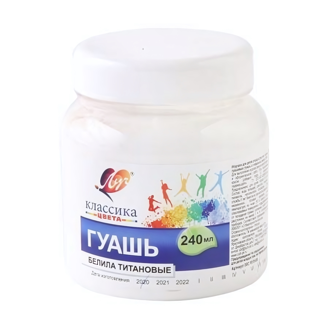 Гуашь белила титановые "Классика", 240 мл – яркие цвета, легкое нанесение