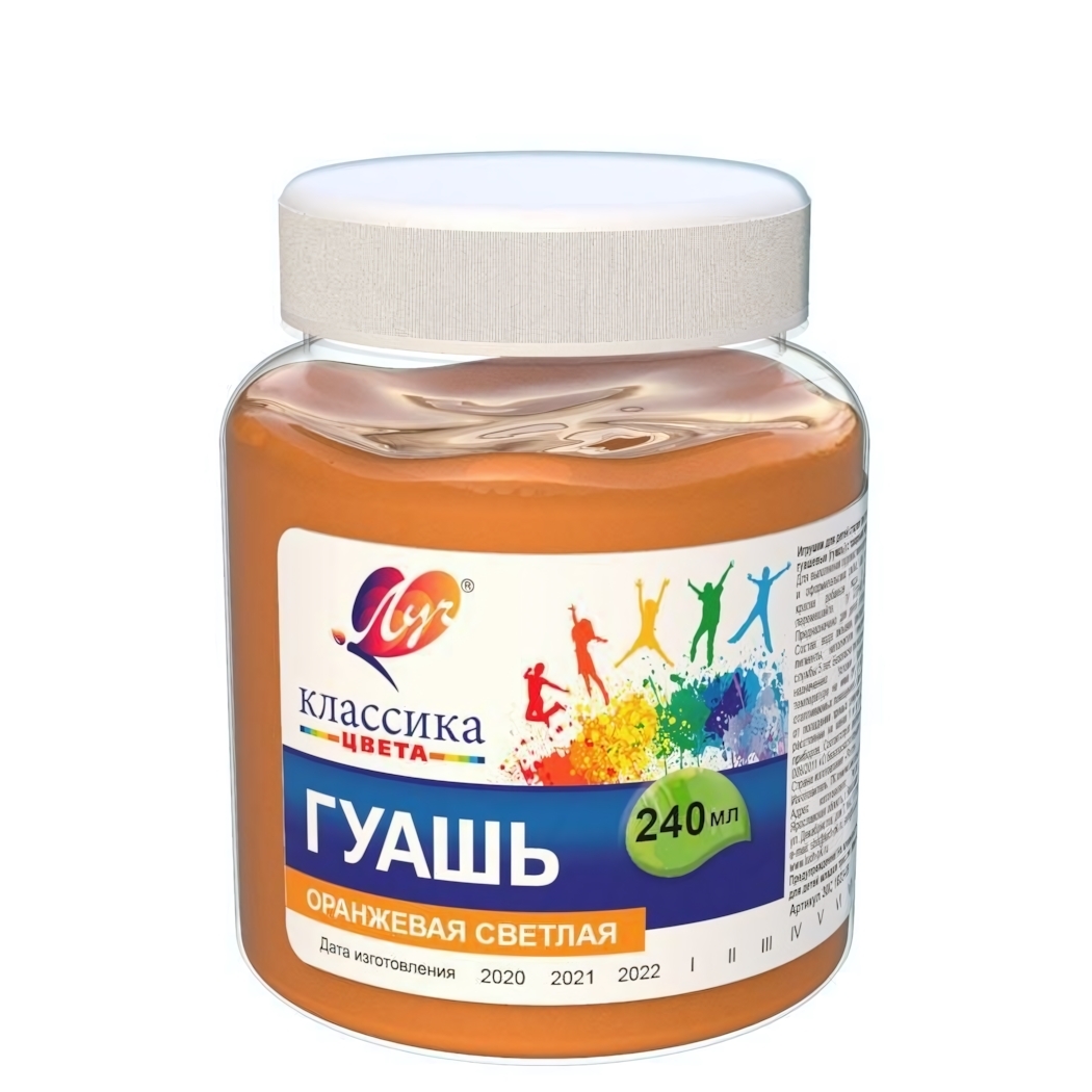 Гуашь "Классика" от Луч, 240 мл, оранжевая светлая – яркие цвета для творчества, легко смывается