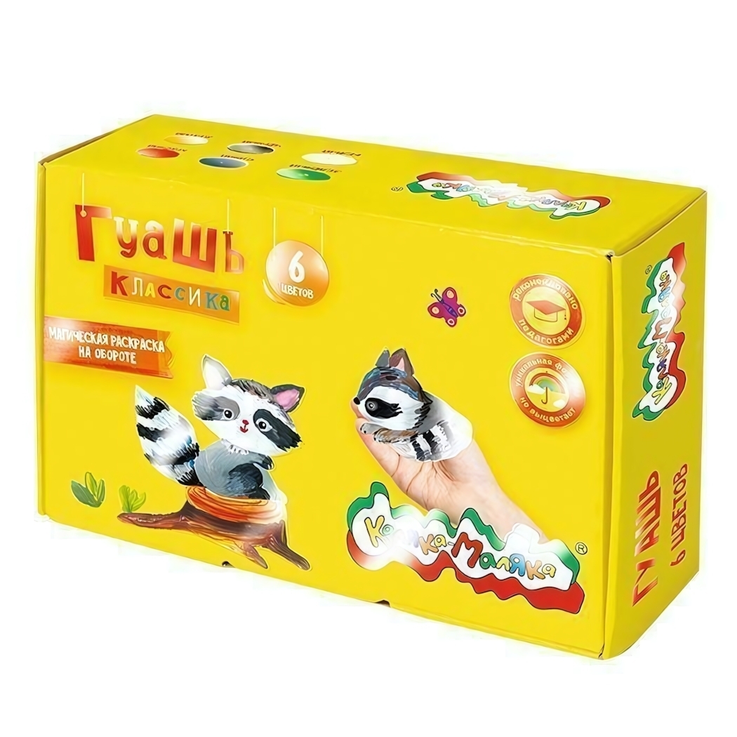Гуашь "Классика" 6 цветов по 20мл, легко смывается, для детского творчества