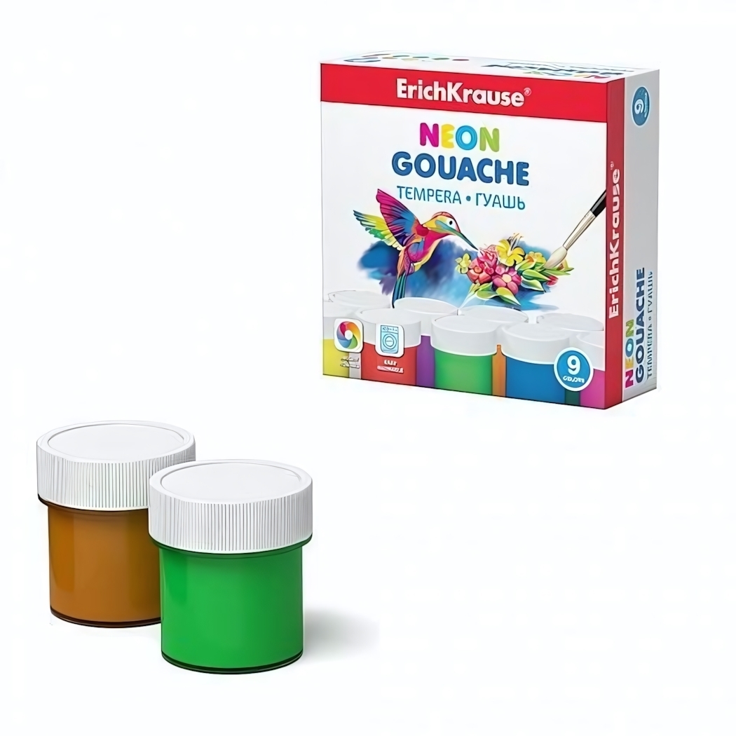 Гуашь неоновая 'NEON GOUACHE' 9 цветов, ErichKrause, люминесцентная