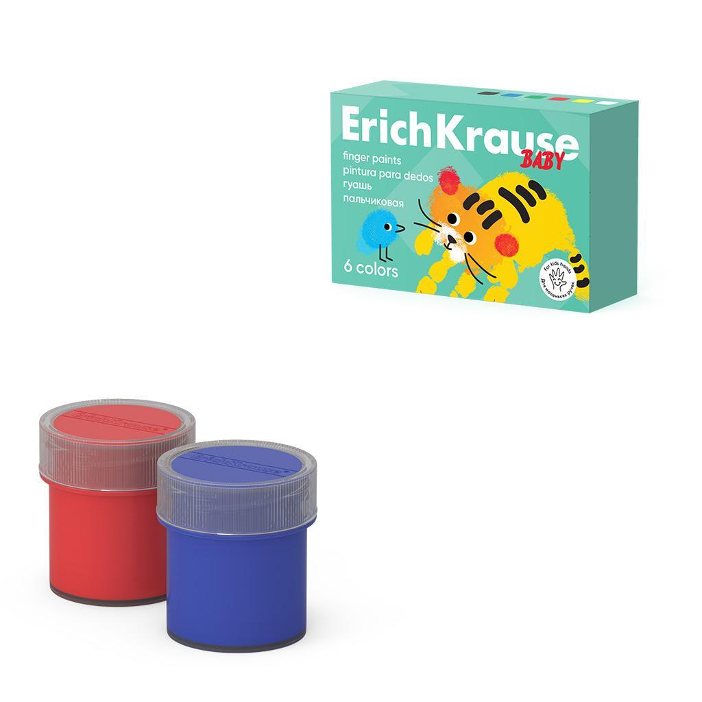 Гуашь пальчиковая ErichKrause Baby, 6 цветов по 20 мл, с Алоэ Вера, для рисования