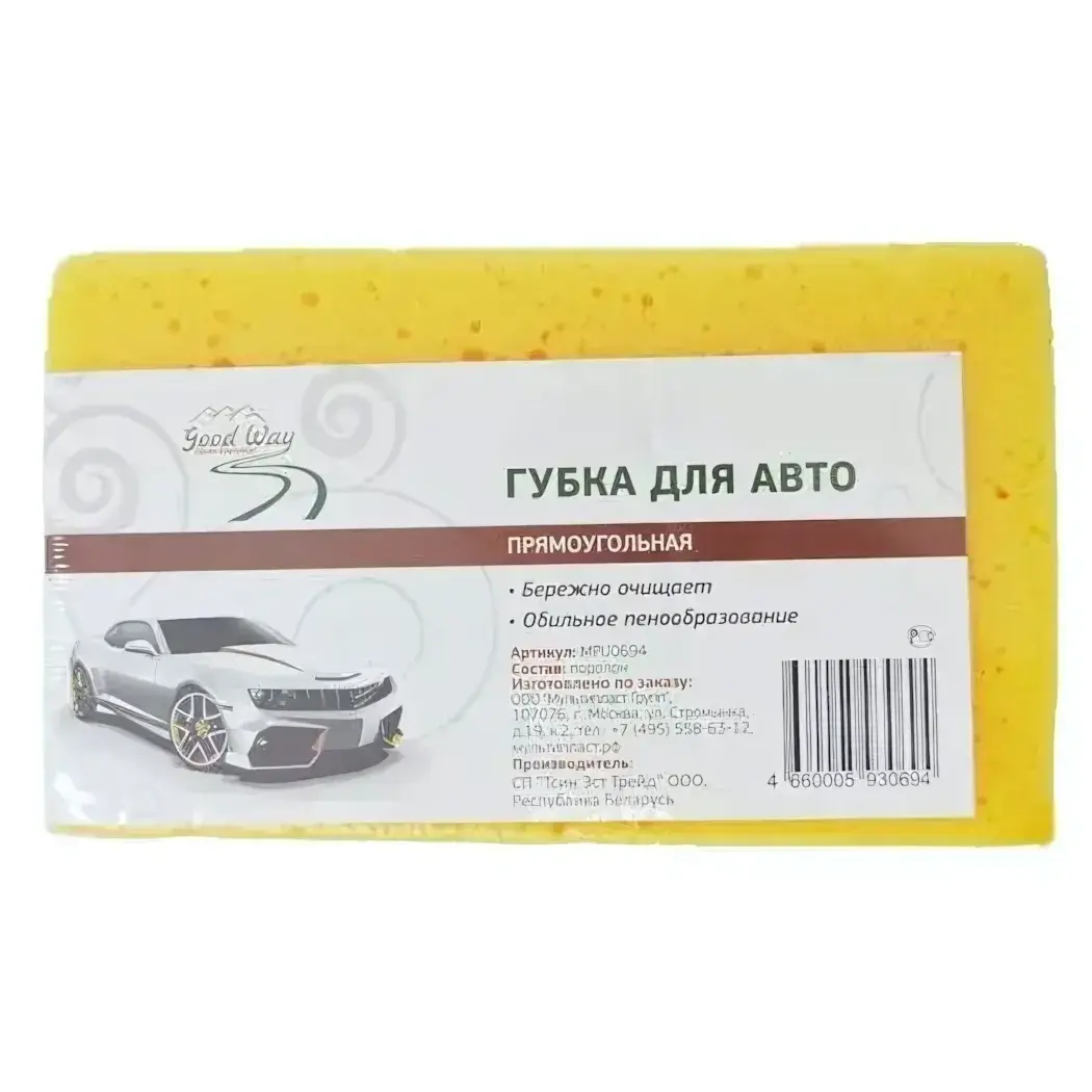 Прямоугольная автомобильная губка обеспечивает деликатную очистку лакокрасочного покрытия, сохраняя блеск кузова. Благодаря особой пористой структуре создает обильную пену, которая эффективно удаляет загрязнения даже без использования химических средств.
