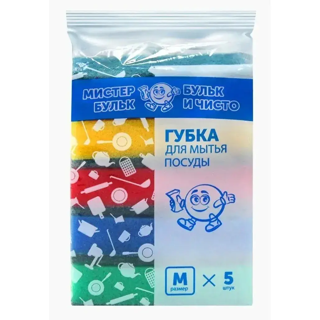 Губка для посуды "Мистер Бульк" М, комплект 5 штук, микс цветов, грубая поверхность