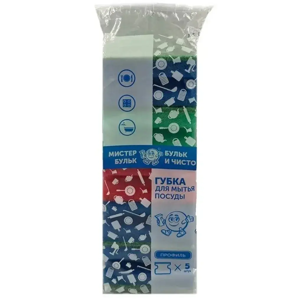 Губка для посуды «Профиль», набор 5 шт, двухслойная структура, цвет в ассортименте