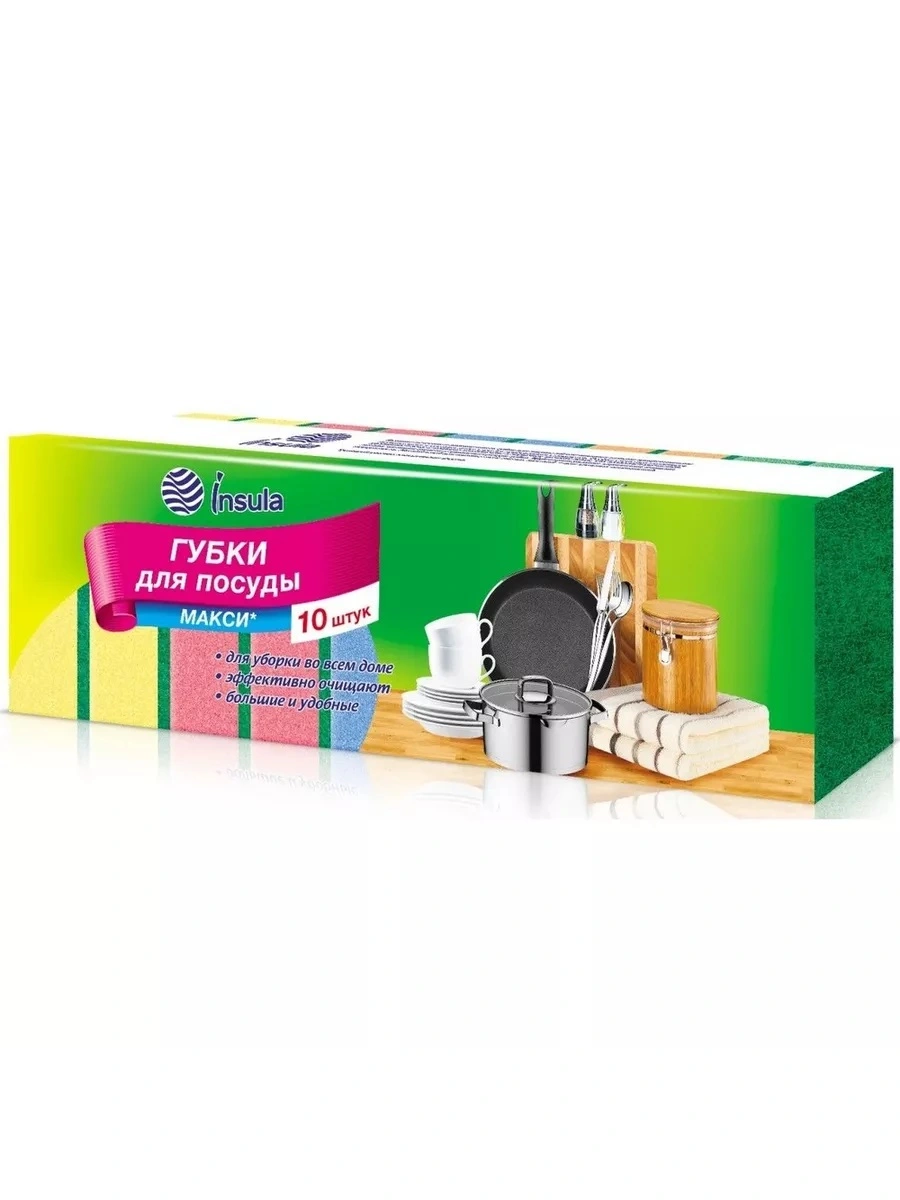Губки для посуды «INSULA» Оптимум, 10 шт, микс цветов, для эффективной уборки во всем доме