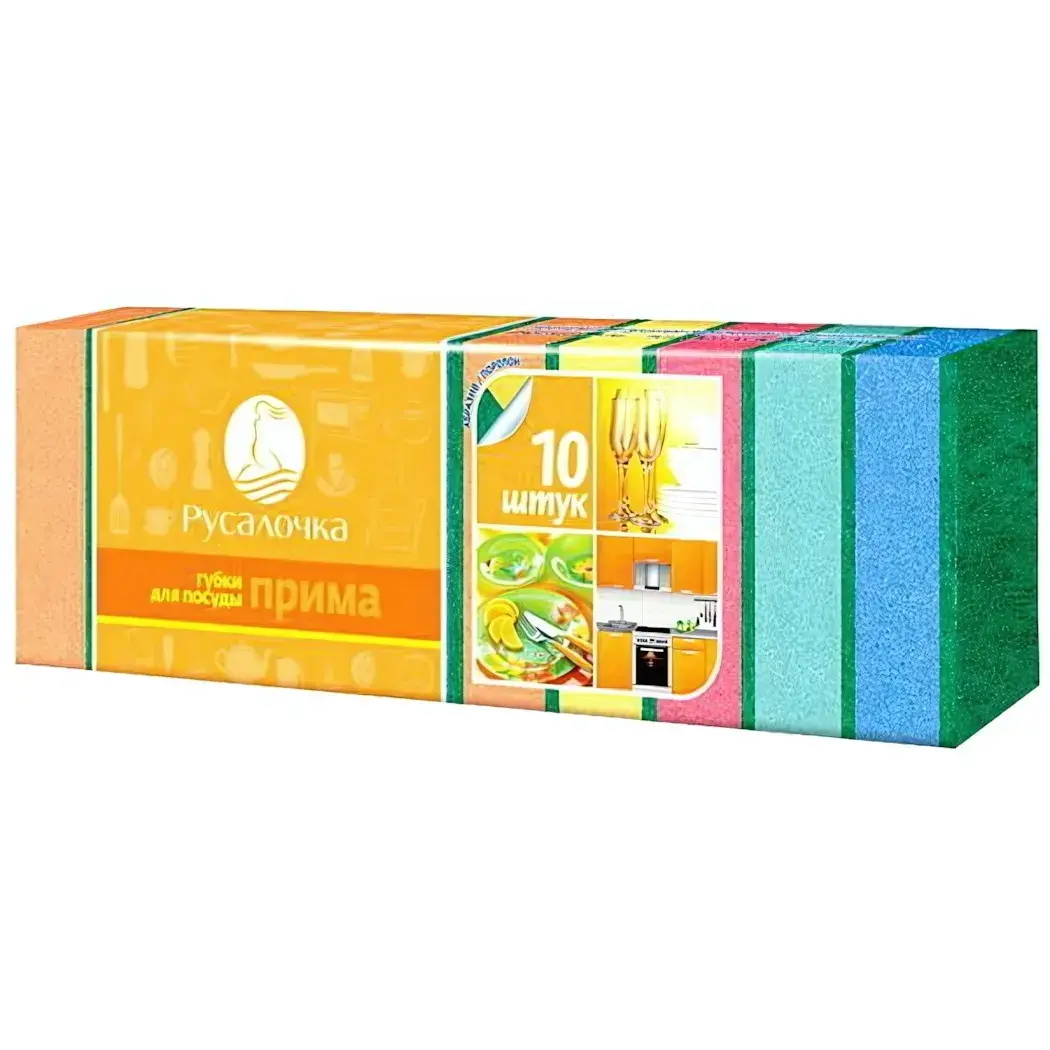 В упаковке представлено 10 штук губок различных цветов: оранжевого, зеленого, синего и розового. Каждая губка имеет стандартные размеры, что делает их удобными для использования. Упаковка выполнена из картонного материала с прозрачной пленкой, позволяющей видеть губки внутри. Это не только удобно, но и позволяет вам выбрать нужный цвет в зависимости от настроения или стиля вашей кухни.