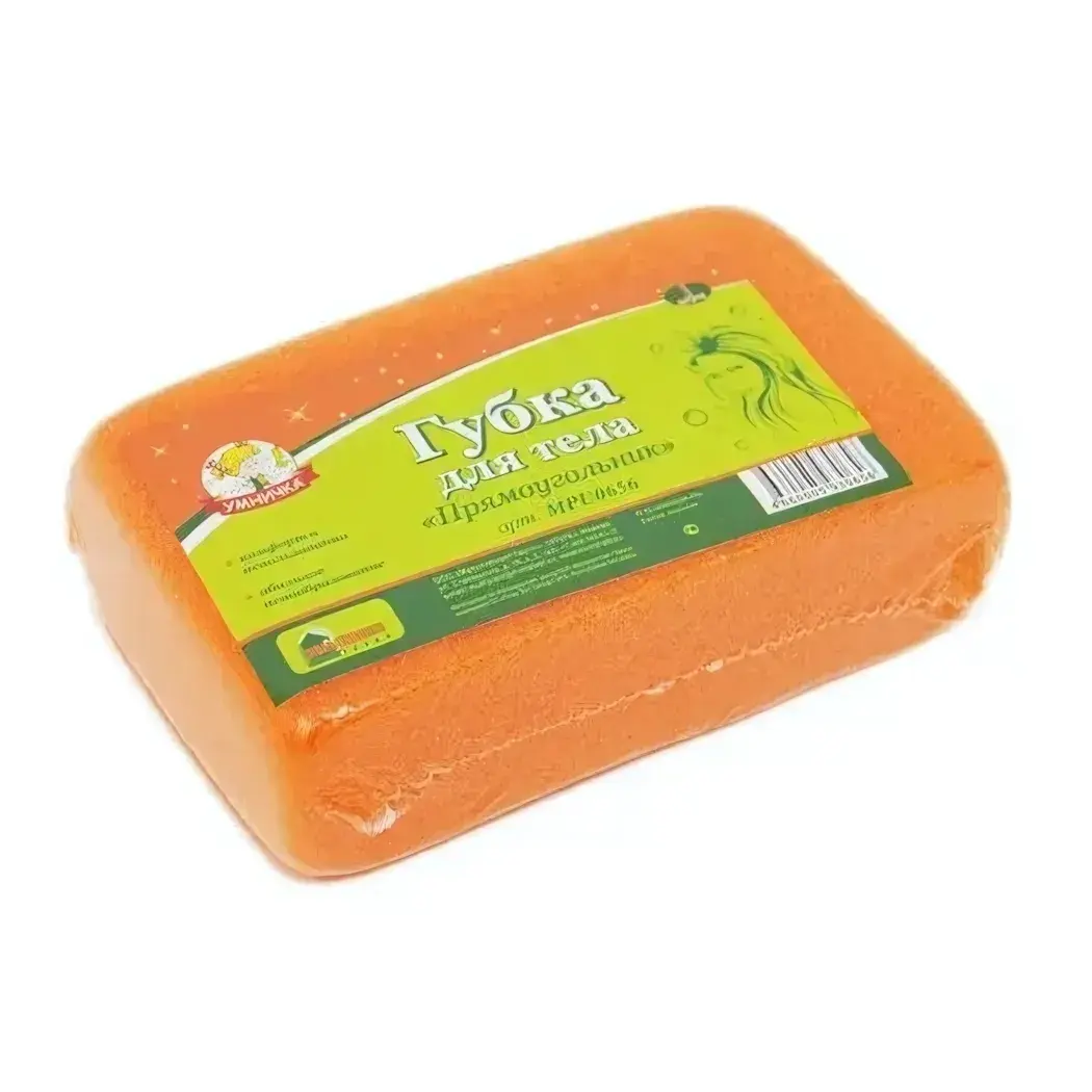 Губка для тела прямоугольная, мягкая, оранжевая, средний размер, пористый материал