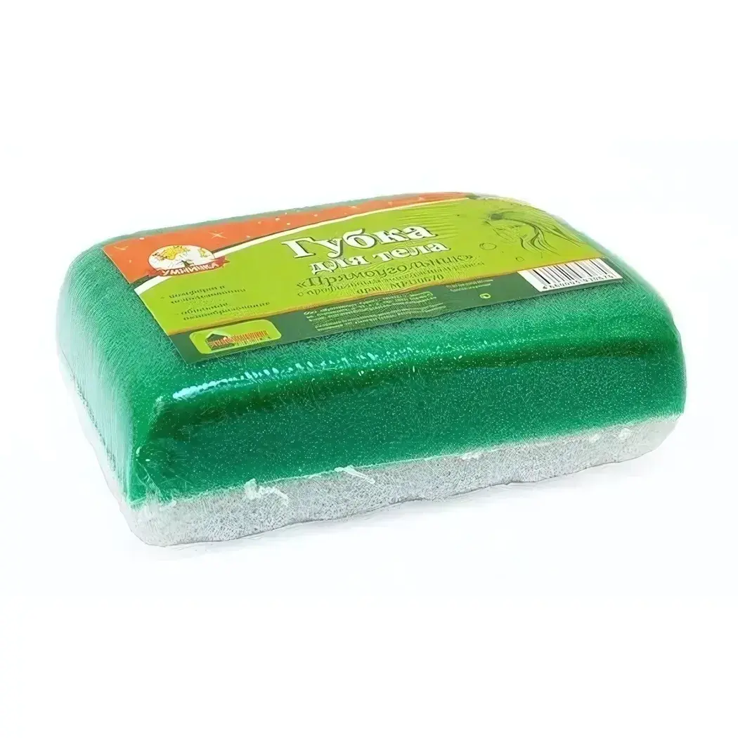 Прямоугольная губка с инновационным прорезиненным слоем обеспечивает деликатное очищение и стимулирующий массаж. Идеально подходит для ежедневного использования в душе или ванной, создавая ощущение комфорта и свежести.