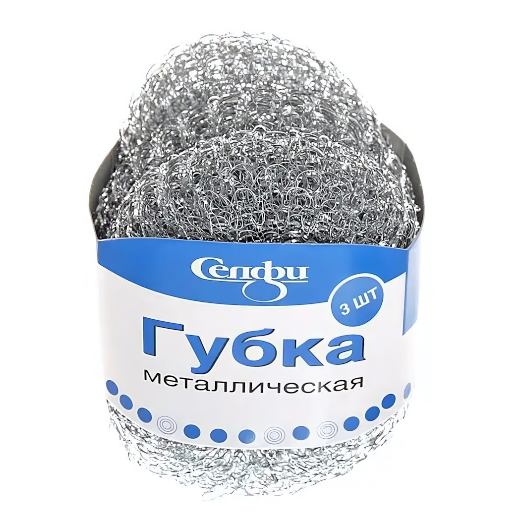 В упаковке вы найдете три металлические губки, каждая из которых весит 16 граммов. Серебристый цвет и сетчатая структура делают губку не только функциональной, но и стильной. Не упустите возможность сделать свою кухню чистой и ухоженной с помощью губки Селфи!