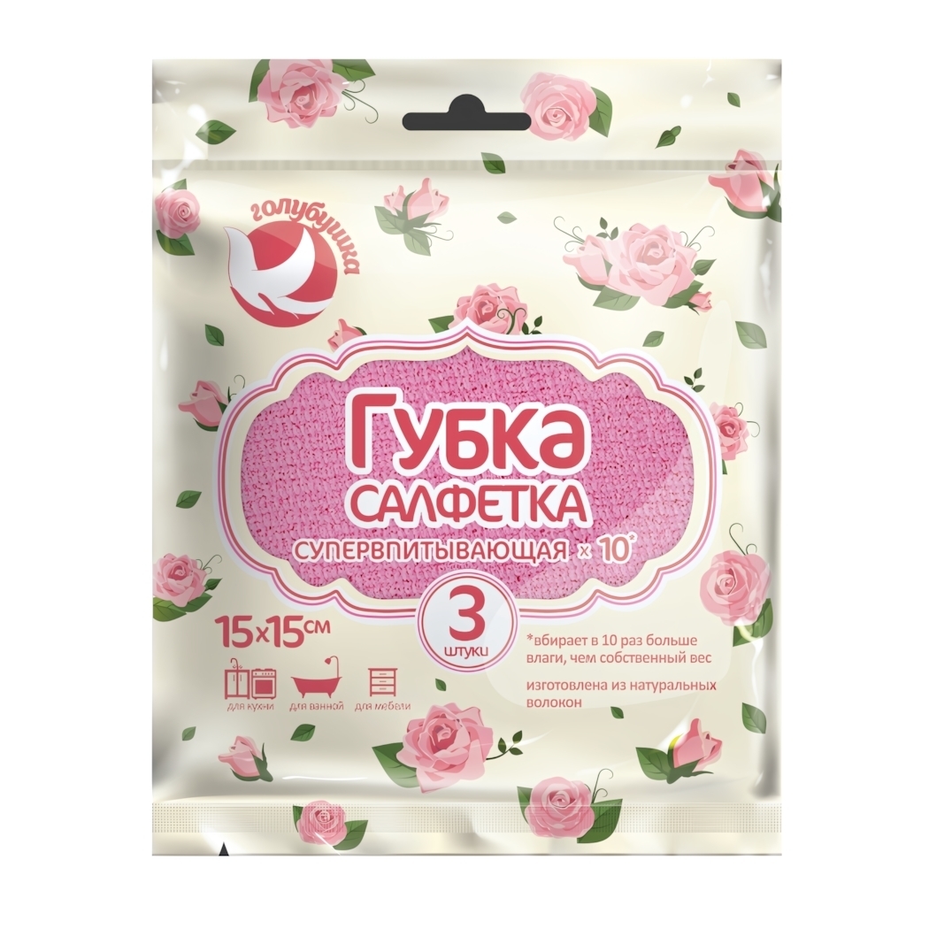Губка-салфетка из целлюлозы «Голубушка» идеально подходит для влажной уборки любой поверхности. Она позволяет быстро и легко очищать кухонные, санузловые и рабочие поверхности, благодаря своему высокому поглотительному эффекту и способности пениться, что снижает расход моющих средств. Универсальность делает её незаменимой для хозяйки: она подходит не только для мытья посуды, но и для раковин, столов и других поверхностей.